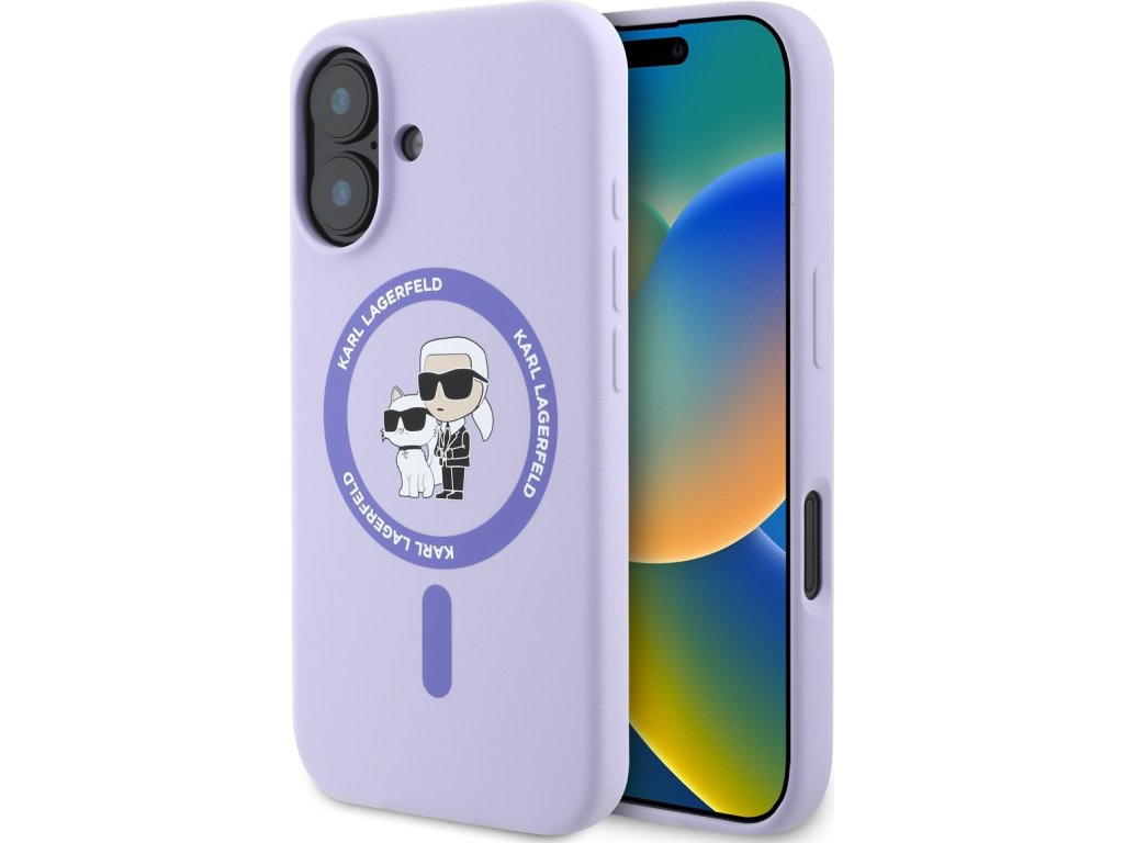 Ochranný kryt na iPhone 16 - Karl Lagerfeld, Silicone Karl and Choupette MagSafe Purple KLHMP16SSCMKCRHU