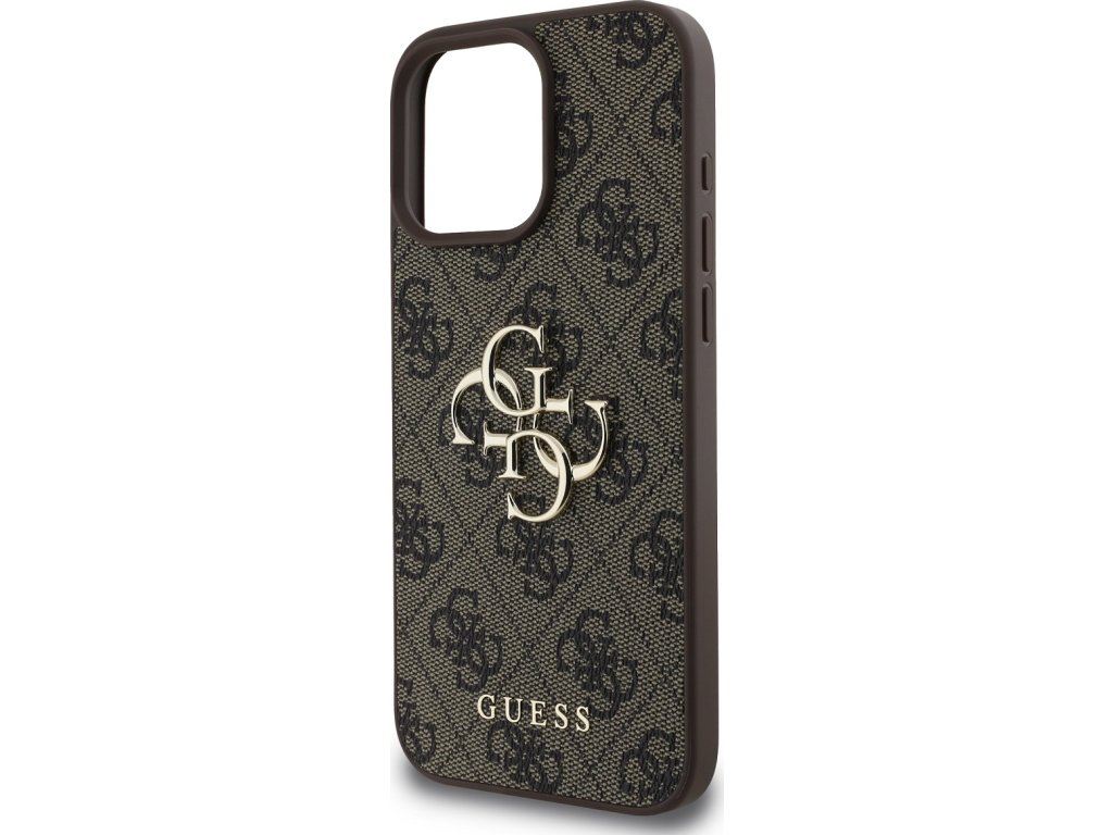 Ochranný kryt na iPhone 16 Pro - Guess, 4G Metal Logo Brown GUHCP16L4GMGBR