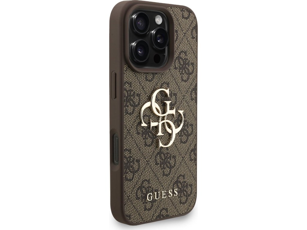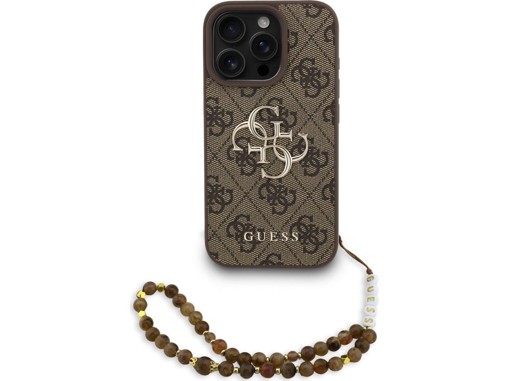 Ochranný kryt na iPhone 16 Pro - Guess, 4G Metal Logo Strap Brown GUHCP16LP4GMGSW