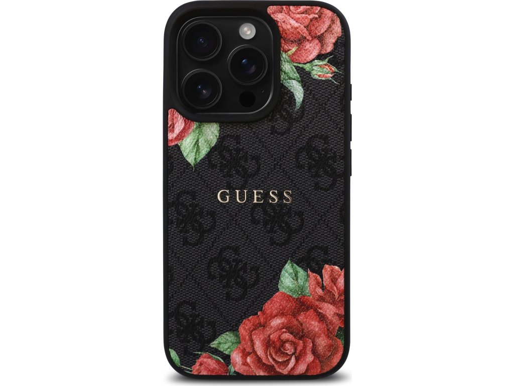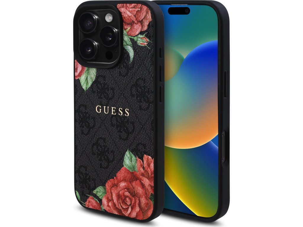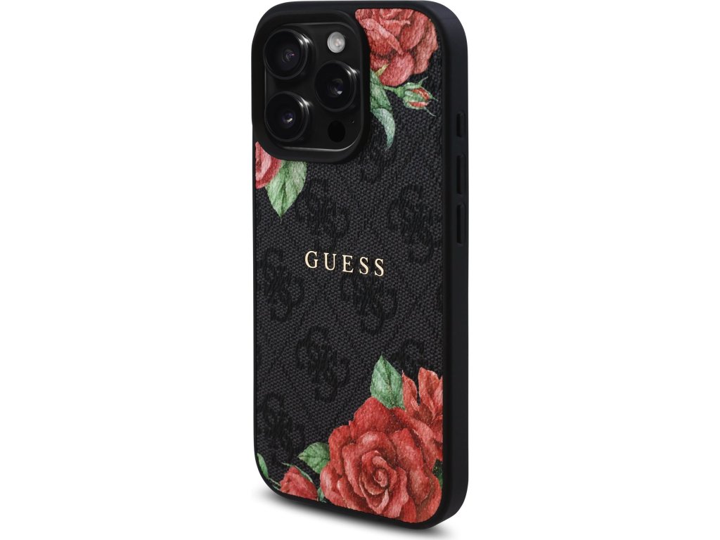 Ochranný kryt na iPhone 16 Pro - Guess, 4G Roses MagSafe Black GUHMP16LP4ROPEMCK