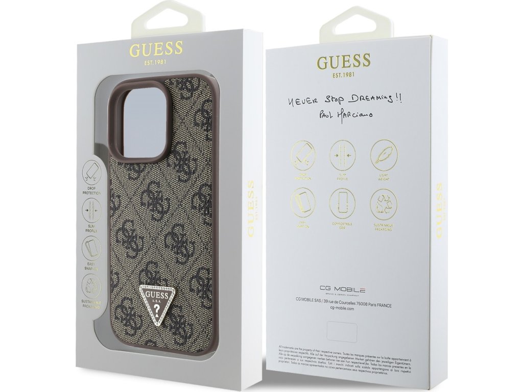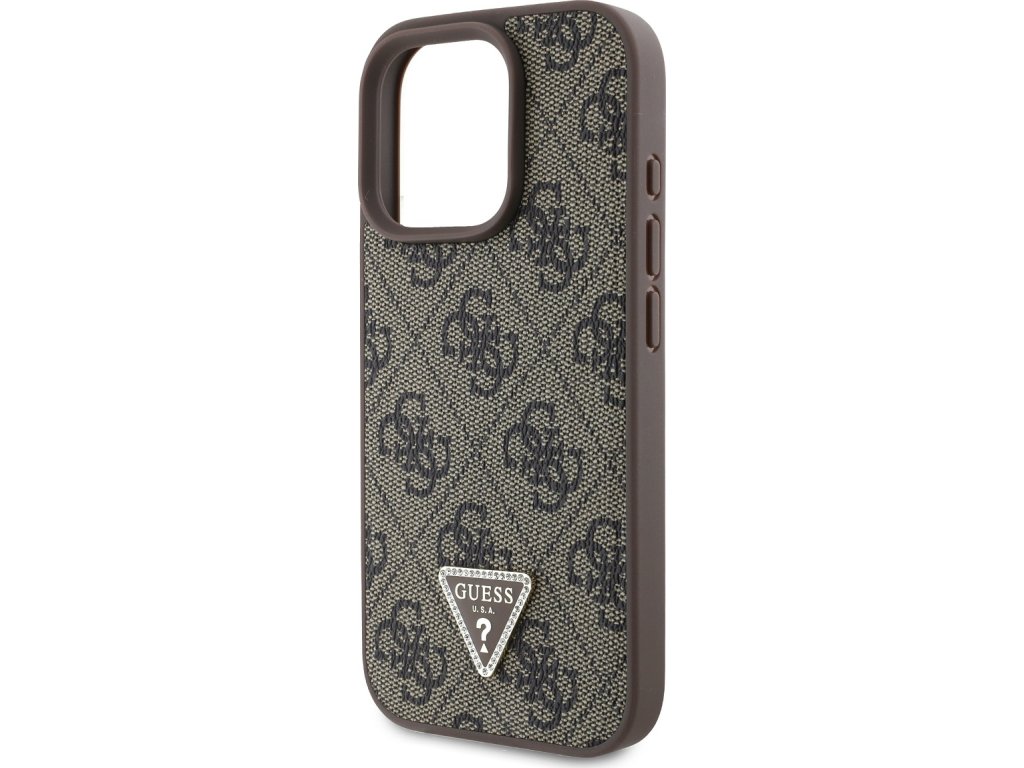 Ochranný kryt na iPhone 16 Pro - Guess, 4G Strass Triangle Brown GUHCP16LP4TDPW