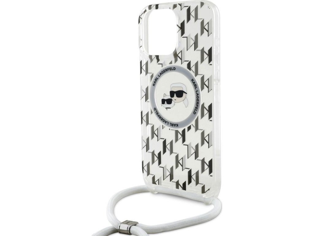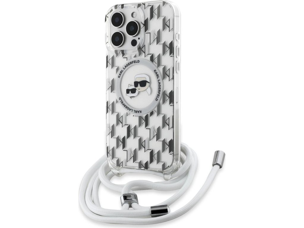 Ochranný kryt na iPhone 16 Pro MAX - Karl Lagerfeld, IML Monogram Crossbody K&CH Heads Magsafe Transparent KLHMP16XHCKCKLCT
