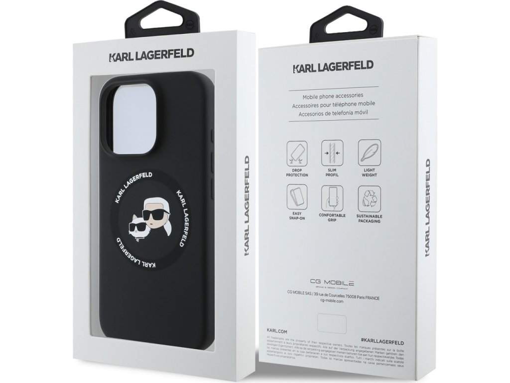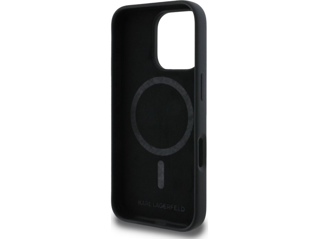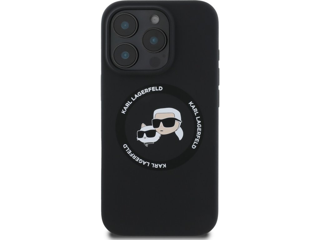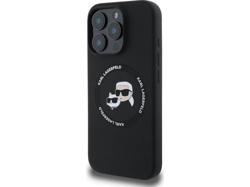 Ochranný kryt na iPhone 16 Pro MAX - Karl Lagerfeld, Silicone K&CH Heads MagSafe Black KLHMP16XSKCHTCK