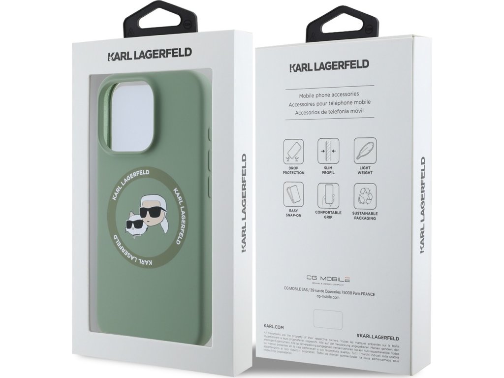 Ochranný kryt na iPhone 16 Pro MAX - Karl Lagerfeld, Silicone K&CH Heads MagSafe Kaki KLHMP16XSKCHTCA