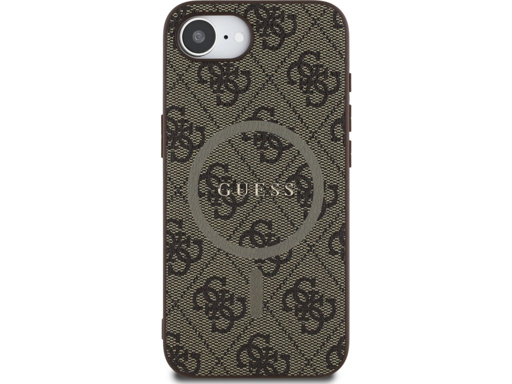Ochranný kryt na iPhone 16e - Guess, 4G Colored Ring MagSafe Brown GUHMPSE4G4GFRW