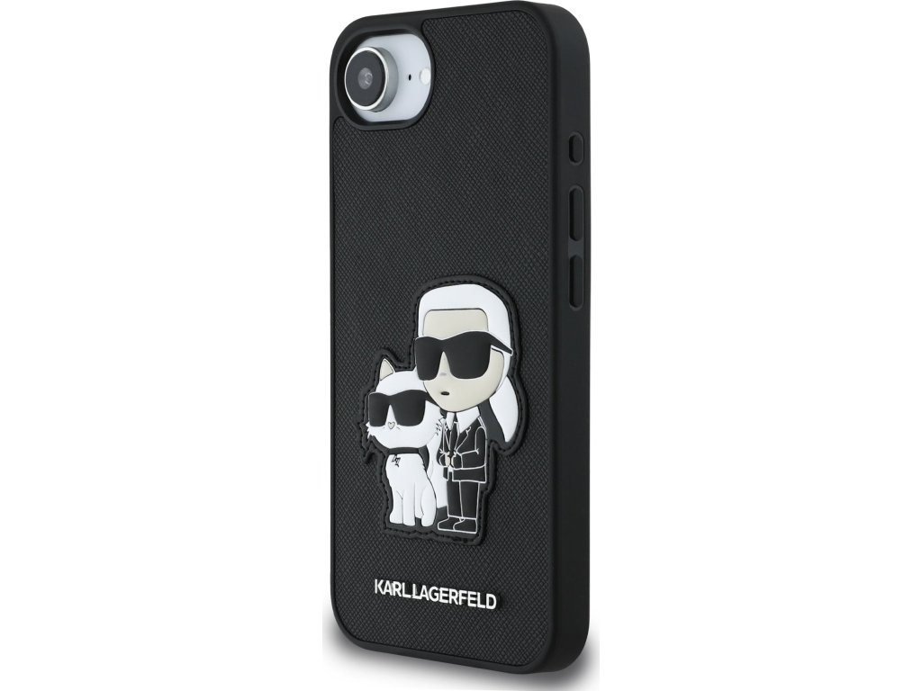 Ochranný kryt na iPhone 16e - Karl Lagerfeld, Saffiano Karl and Choupette Black KLHCPSE4SANKCPK