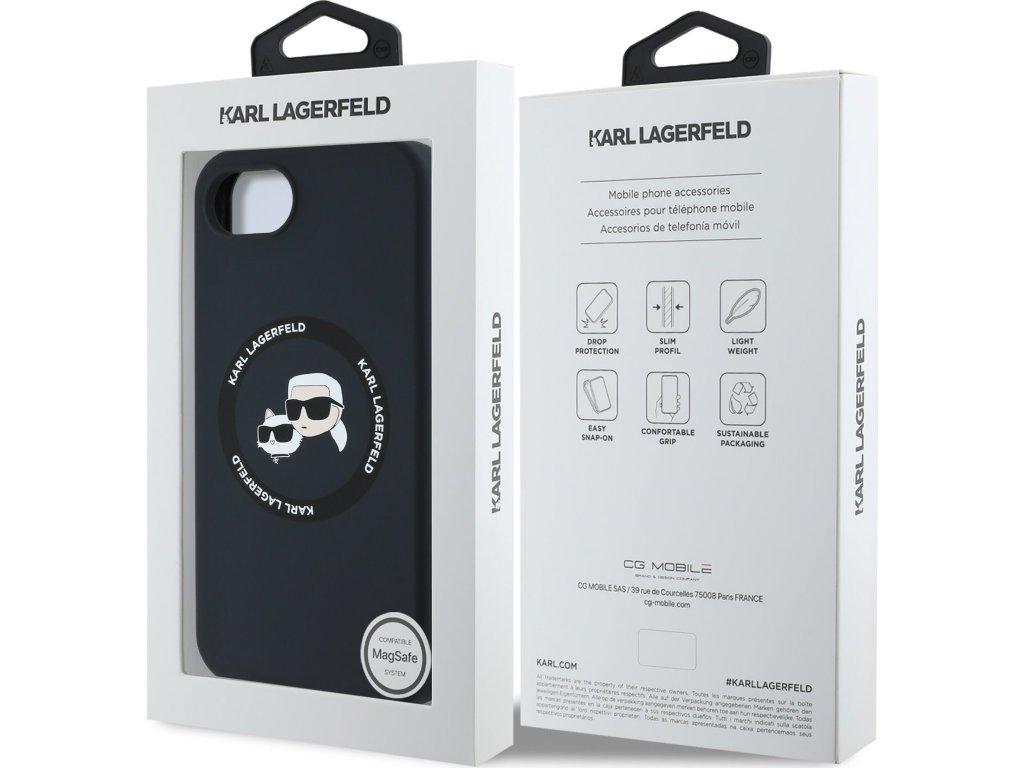 Ochranný kryt na iPhone 16e - Karl Lagerfeld, Silicone K&CH Heads MagSafe Black KLHMPSE4SKCHTCK