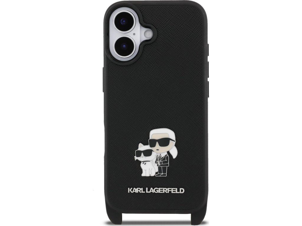 Ochranný kryt na iPhone 17 - Karl Lagerfeld, Saffiano Crossbody Karl and Choupette Black