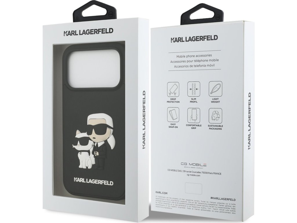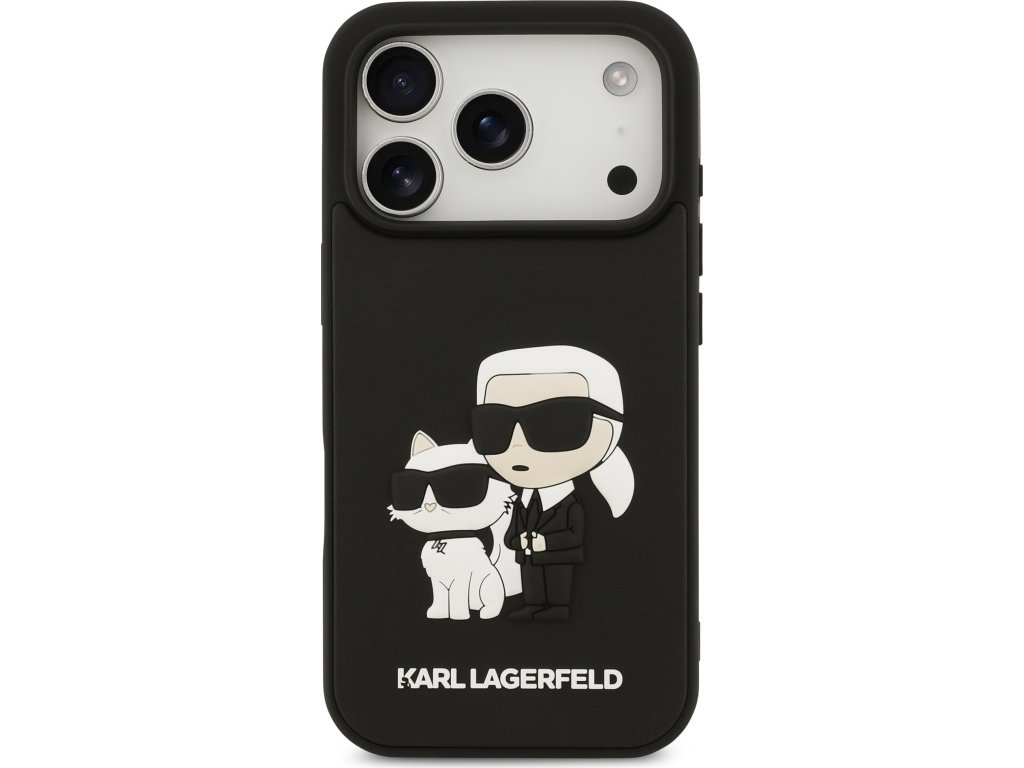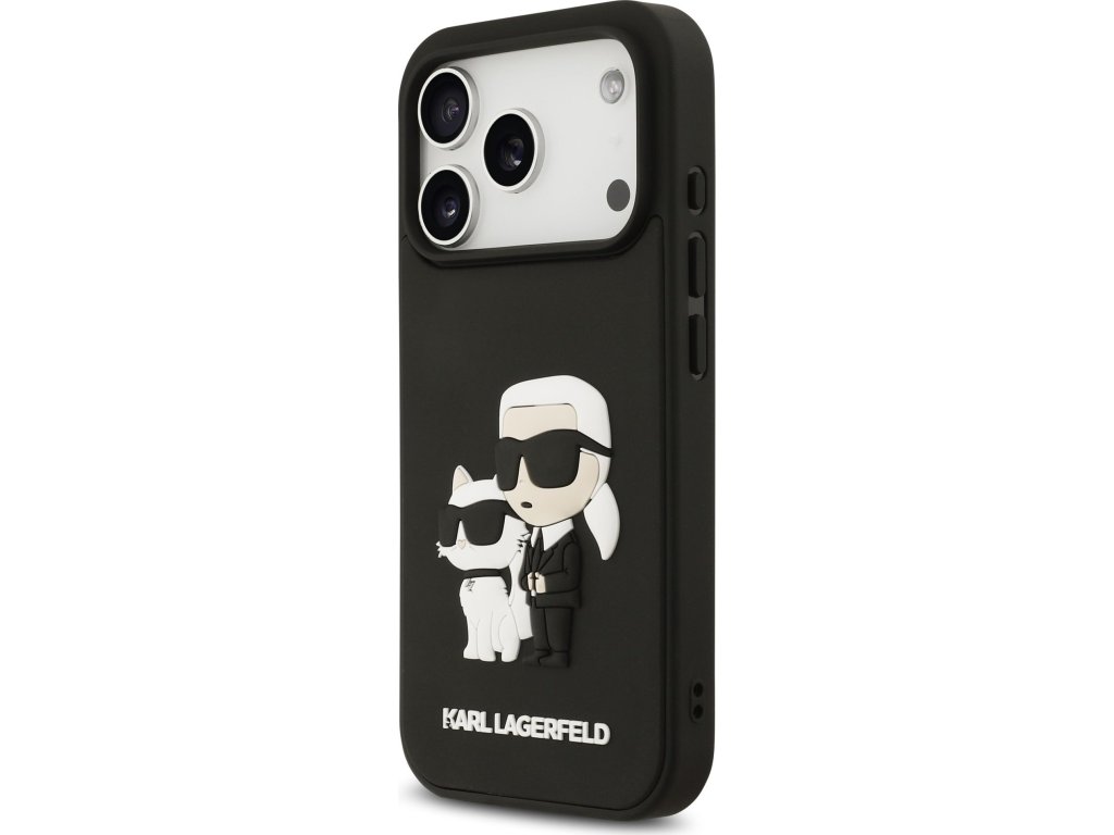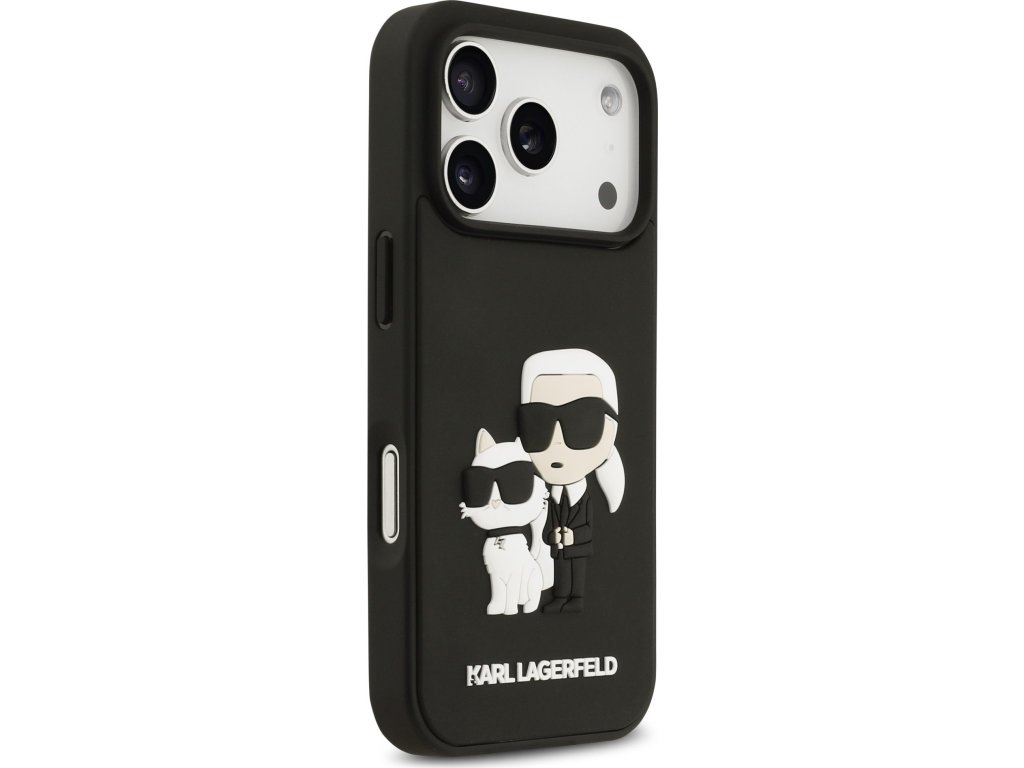 Ochranný kryt na iPhone 17 Pro - Karl Lagerfeld, 3D Rubber Karl and Choupette Black