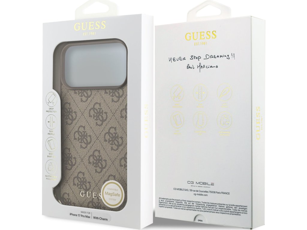 Ochranný kryt na iPhone 17 Pro MAX - Guess, 4G Charm Brown