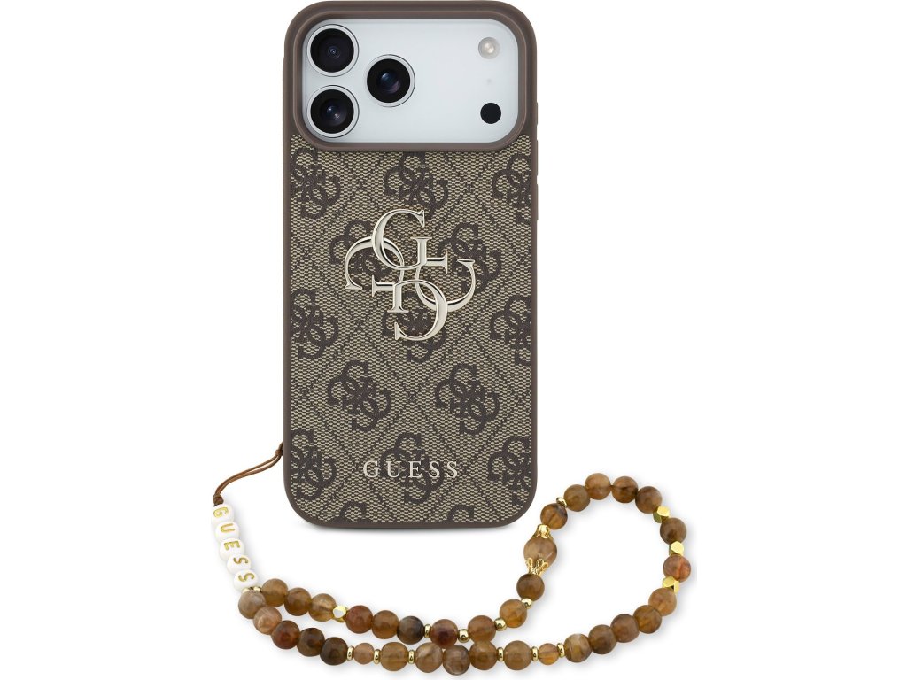 Ochranný kryt na iPhone 17 Pro MAX - Guess, Metal Logo Strap Brown