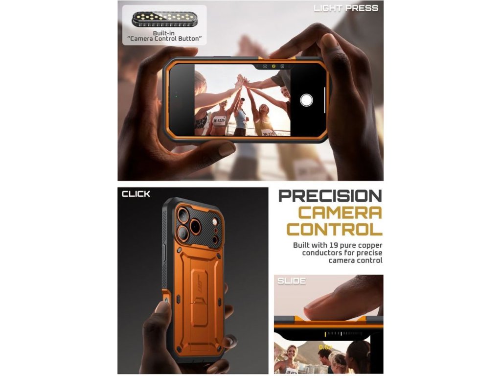 Obal na iPhone je maximálně odolný a všechny 4 rohy jsou opatřeny vyztuženou ochranou. Ta dokáže absorbovat pády z velkých výšek. Přesto máte přístup ke všem ovládacím tlačítkům i konektoru Lightning na nabíjení nebo připojení sluchátek. Nabíjecí konektor a přepínač tichého režimu jsou navíc obdařeny krytkou. V pouzdru lze telefon nabíjet bezdrátově.