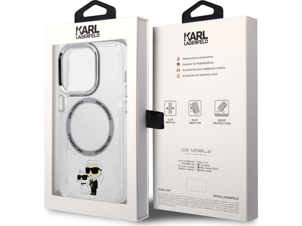 Ochranný kryt pro iPhone 13 Pro - Karl Lagerfeld, IML Karl and Choupette NFT MagSafe Transparent KLHMP13LHNKCIT