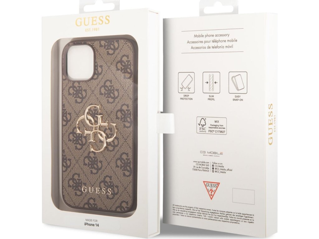 Ochranný kryt pro iPhone 14 - Guess, 4G Logo Back Brown GUHCP14S4GMGBR