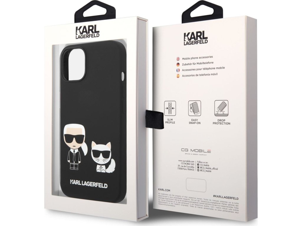 Ochranný kryt pro iPhone 14 PLUS - Karl Lagerfeld, Liquid Silicone Karl and Choupette Black KLHCP14MSSKCK