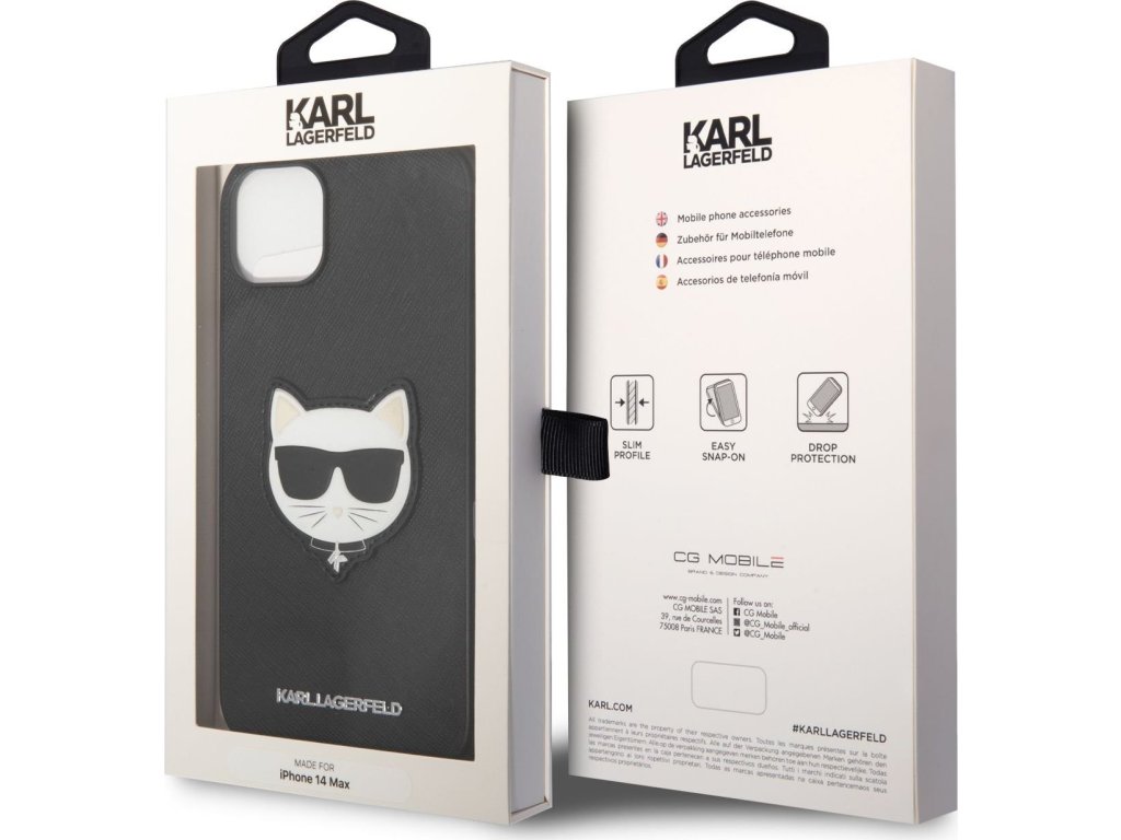 Ochranný kryt pro iPhone 14 PLUS - Karl Lagerfeld, Saffiano Choupette Head Black KLHCP14MSAPCHK