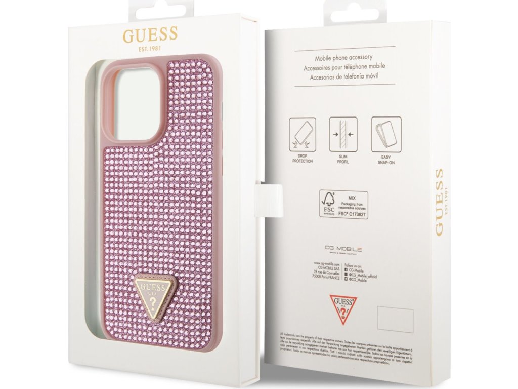 Ochranný kryt pro iPhone 14 Pro MAX - Guess, Rhinestones Triangle Metal Logo Pink GUHCP14XHDGTPP