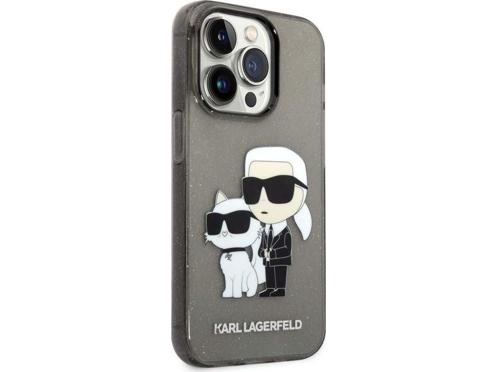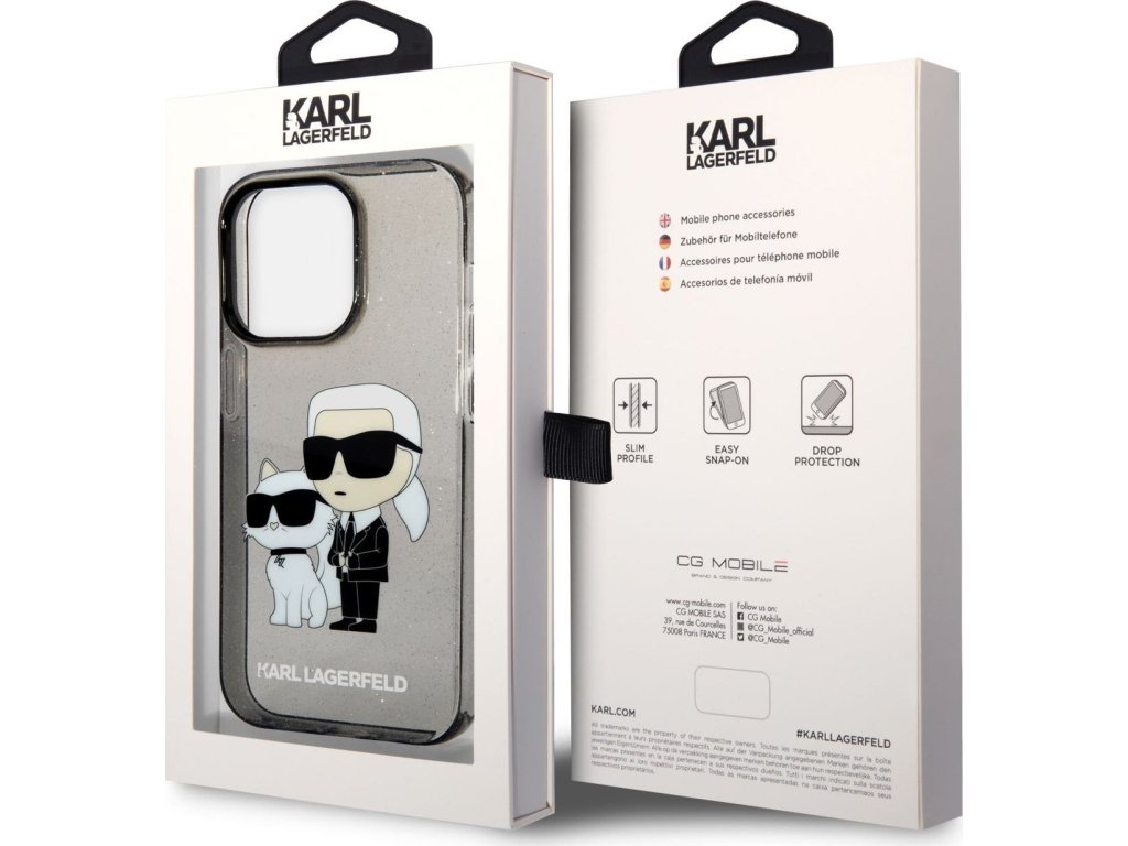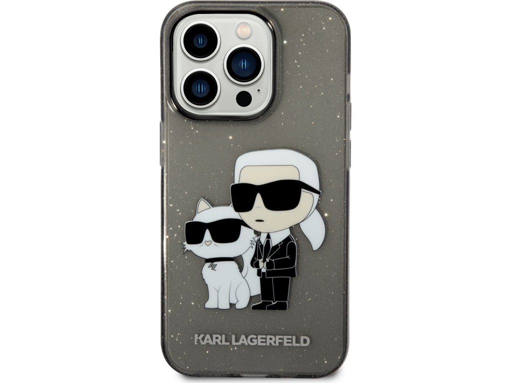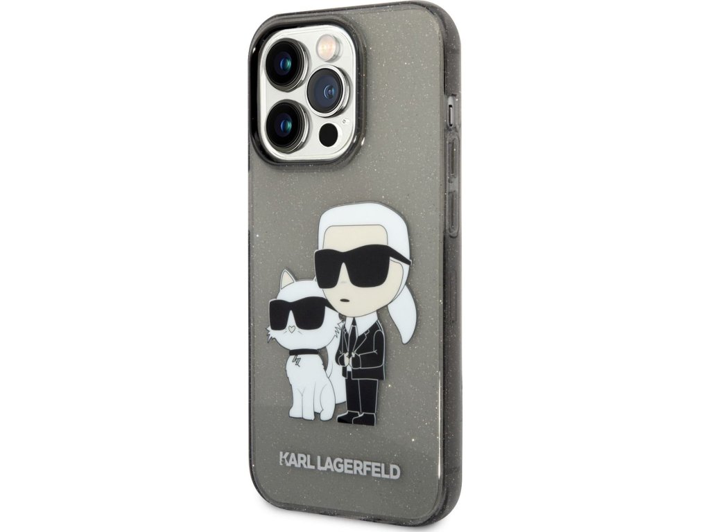 Ochranný kryt pro iPhone 14 Pro MAX - Karl Lagerfeld, IML Glitter Karl and Choupette Black - POUŽITÉ