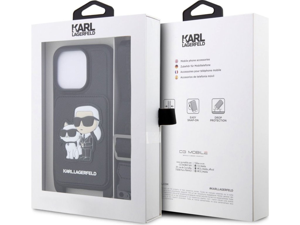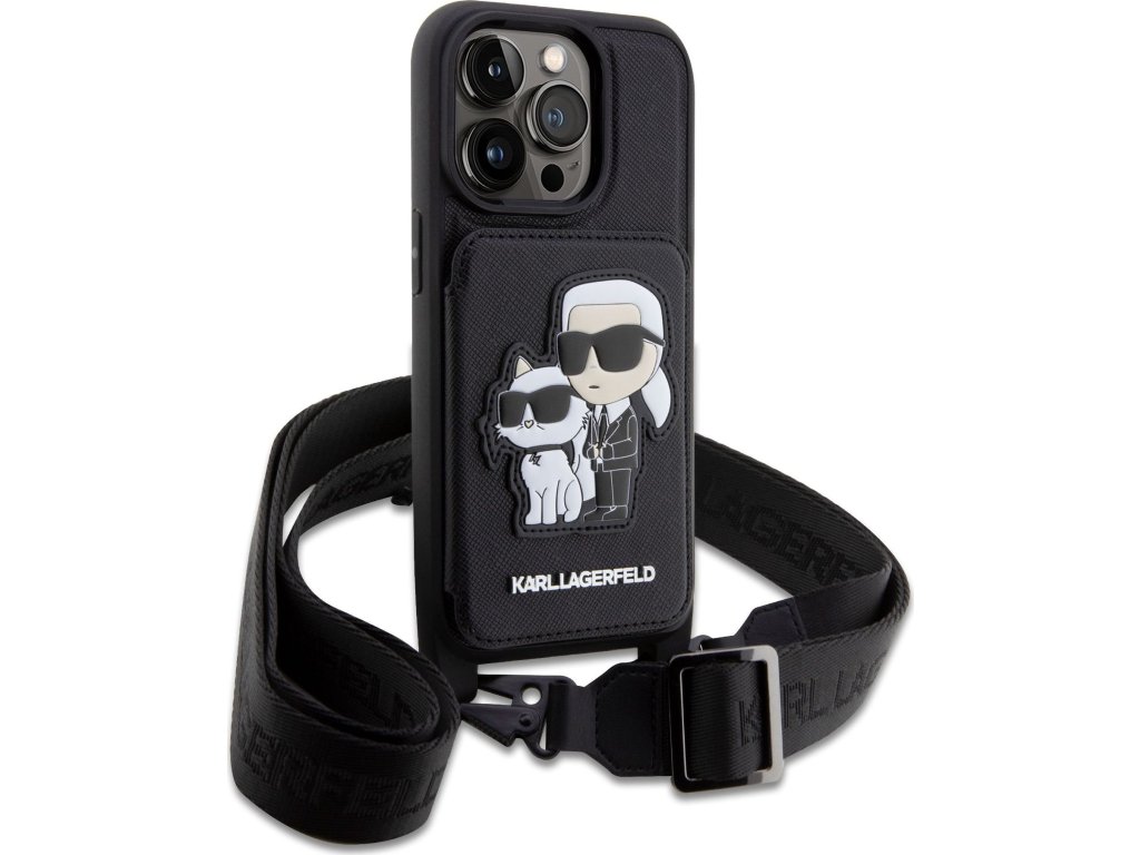 Ochranný kryt pro iPhone 14 Pro MAX - Karl Lagerfeld, Saffiano Crossbody Karl and Choupette NFT Black KLHCP14XCSAKCPMK