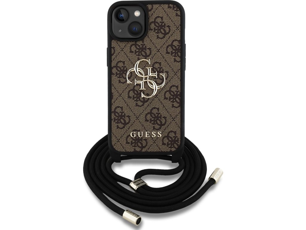 Ochranný kryt s crossbody popruhem na iPhone 15 - Guess, 4G PU Metal Logo Brown GUHCP15SP4GMGCRW