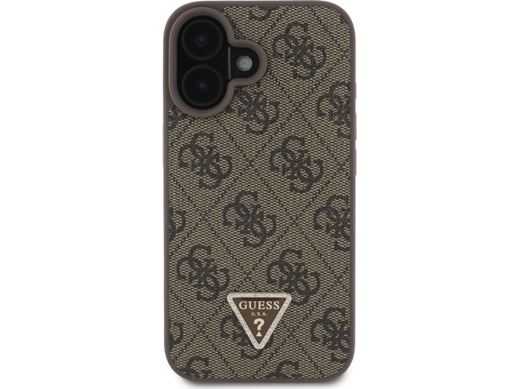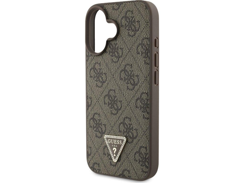 Ochranný kryt s crossbody popruhem na iPhone 16 - Guess, 4G Strass Triangle Metal Logo Brown GUHCP16SP4TDSCPW