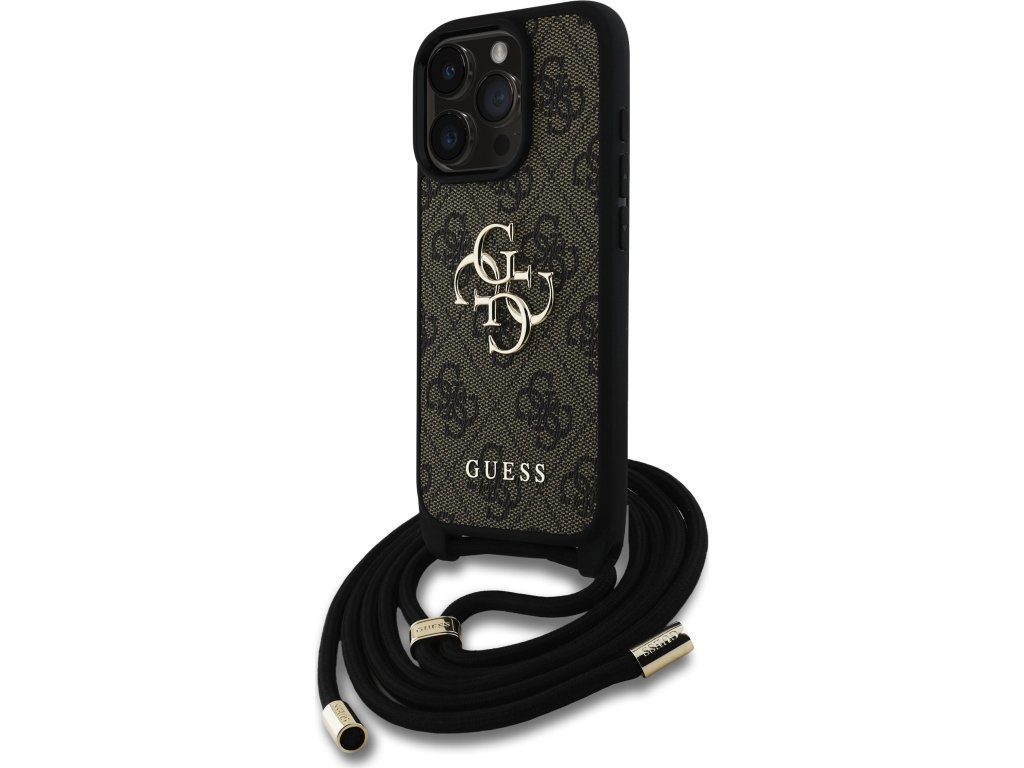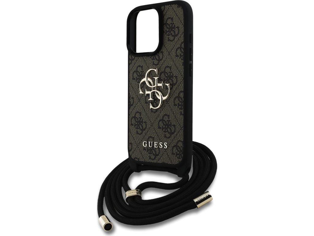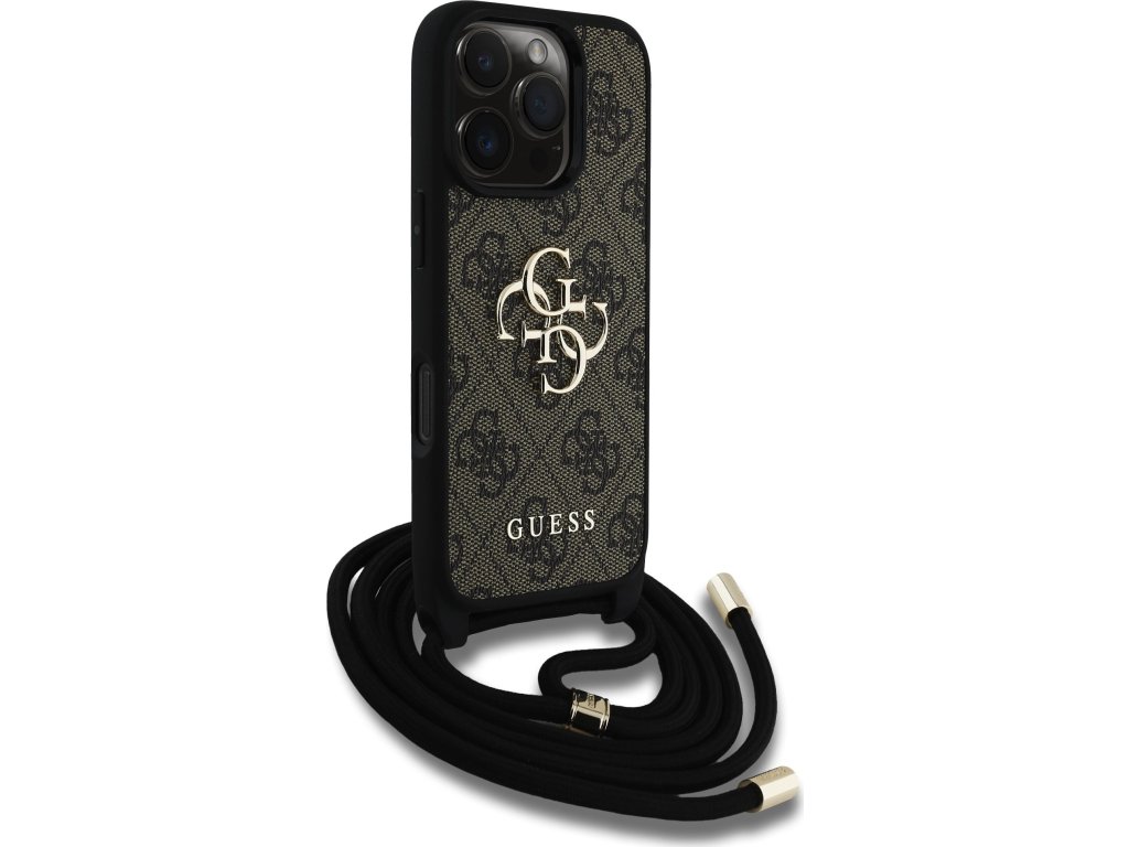Ochranný kryt s crossbody popruhem na iPhone 16 Pro - Guess, 4G PU Metal Logo Brown GUHCP16LP4GMGCRW