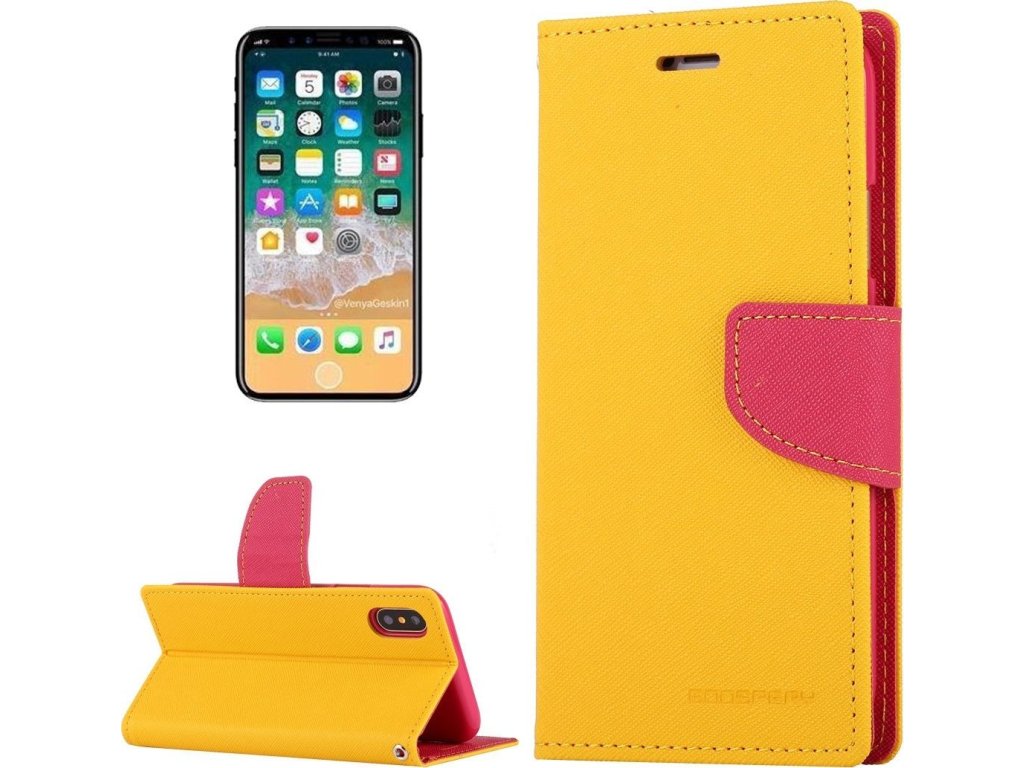 Pouzdro / kryt pro iPhone XS / X - Mercury, Fancy Diary YELLOW/HOTPINK