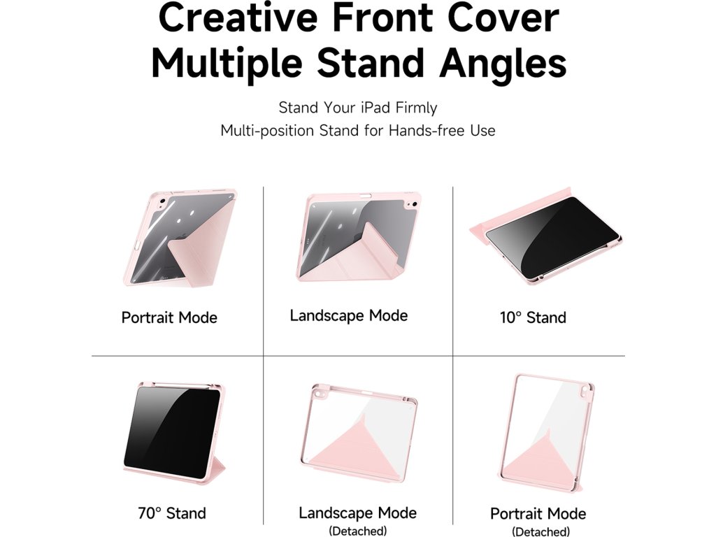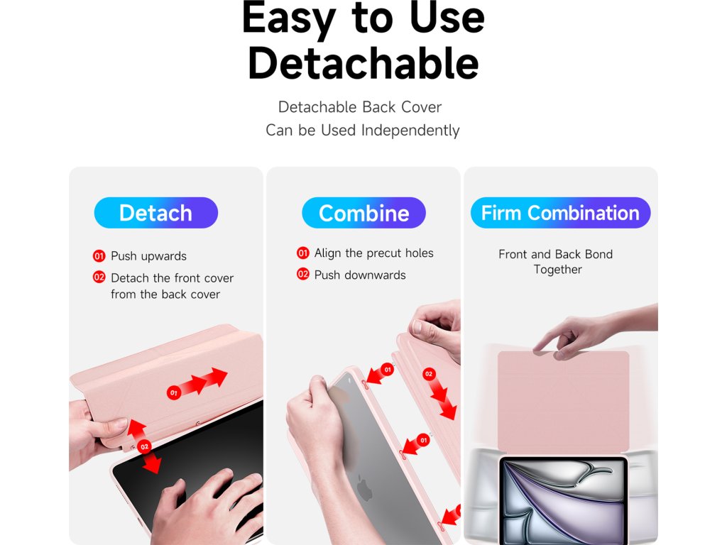 Kryt na iPad velmi rychle nasadíte a v plastovém obalu bude tablet perfektně držet. Záda jsou průhledná, takže vynikne originální design iPadu. Přední část se dá lehce skládat a při otevření se iPad automaticky rozsvítí. Zavření krytu zase displej zhasne a šetří tím energii. Navíc jde odpojit přední část a používat pouze kryt zad. Je to jen na vás.