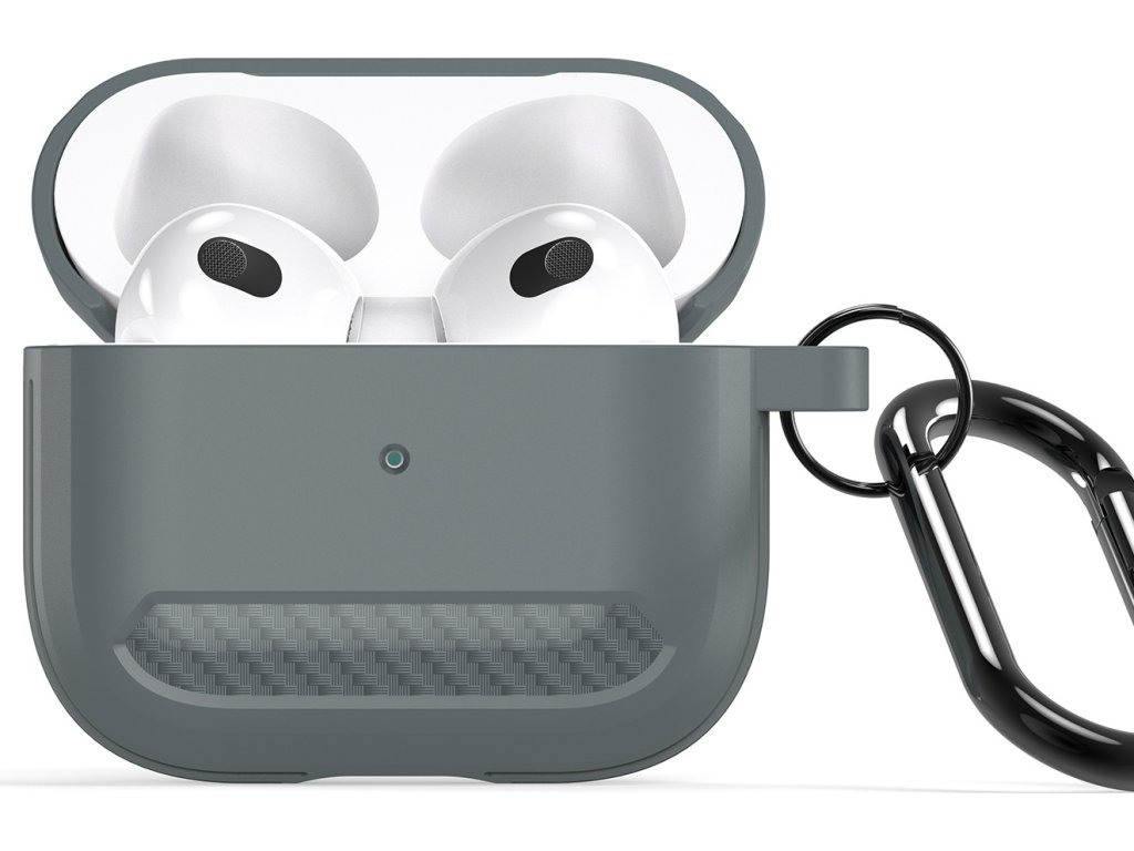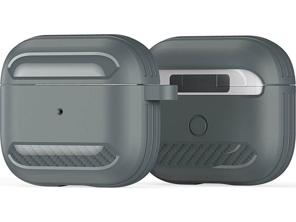 Kryt pro sluchátka AirPods udrží nabíjecí krabičku v dokonalé kondici. Je vyroben z TPU, což je odolný materiál, který odolává potu a otiskům prstů a je příjemný na dotek. K tomu dopomáhá i karbonové šrafování po stranách krytu.