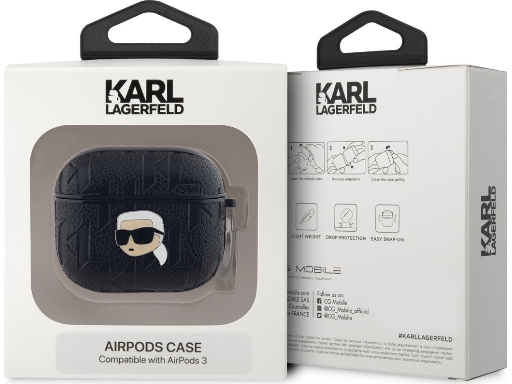 Pouzdro na sluchátka AirPods 3 - Karl Lagerfeld, PU Embossed Karl Head Black KLA3PGKIPK