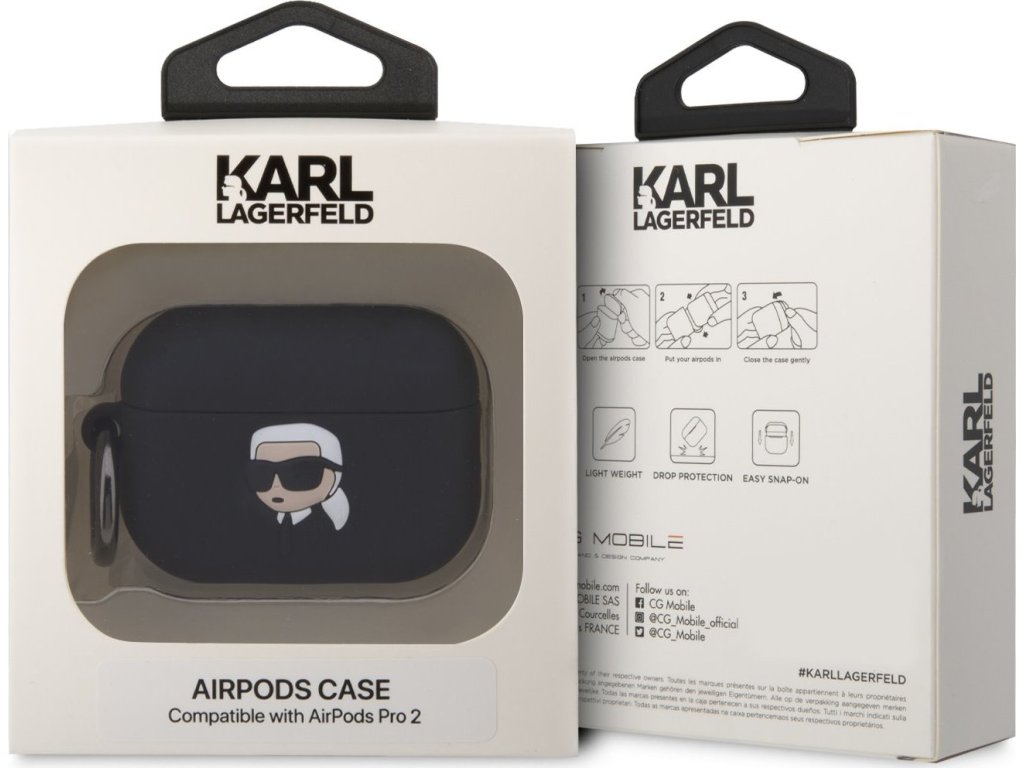 Pouzdro na sluchátka AirPods Pro 2 - Karl Lagerfeld, NFT Karl Head Black KLAP2RUNIKK