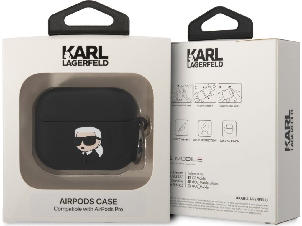 Pouzdro na sluchátka AirPods Pro - Karl Lagerfeld, NFT Karl Head Black KLAPRUNIKK