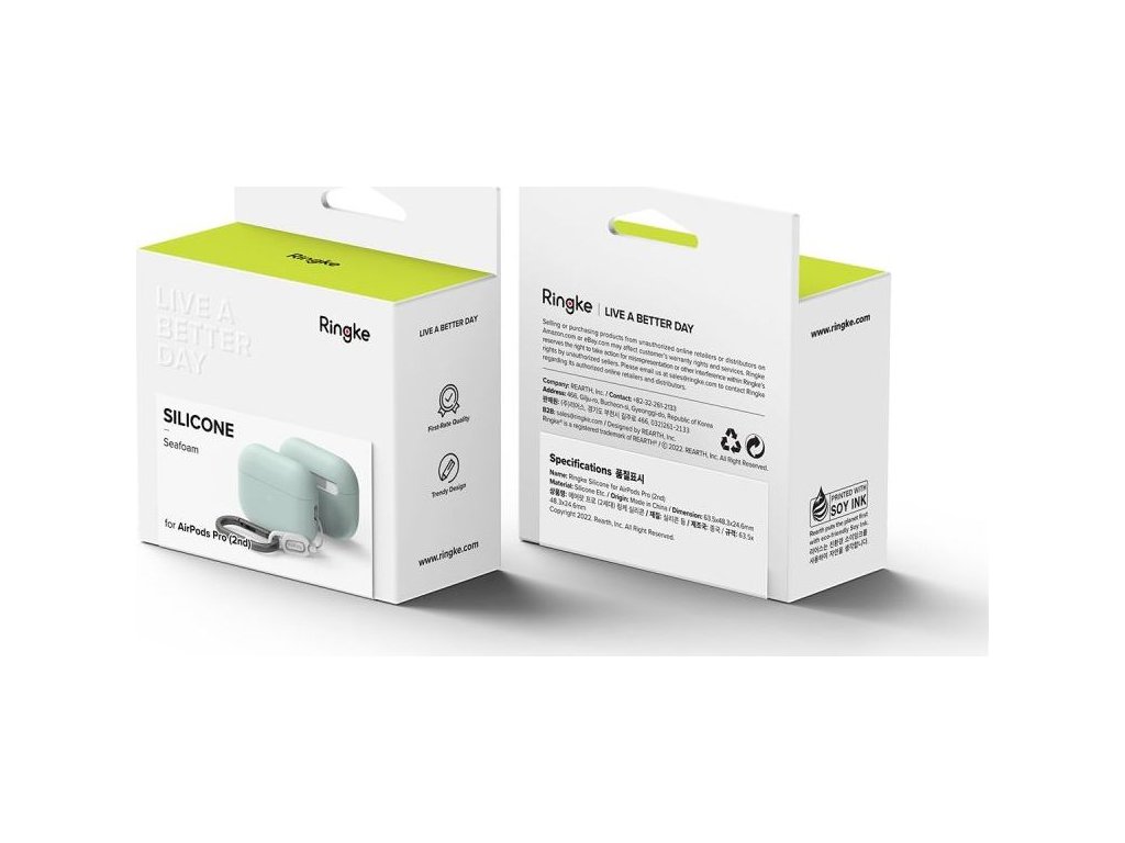 Pouzdro na sluchátka AirPods Pro Ringke Silicone Seafoam je praktické a stylové ochranné pouzdro vyrobené z měkkého, odolného silikonového materiálu, které chrání vaše AirPods Pro před poškrábáním, nárazy a každodenním opotřebením. Díky jemnému, mořskému odstínu Seafoam dodává zařízení svěží a moderní vzhled, zatímco přesné výřezy umožňují snadný přístup k nabíjecímu portu a tlačítkům. Pouzdro je navrženo tak, aby bylo jednoduché na nasazení a zároveň pevně drželo, což zajišťuje dlouhodobou ochranu a stylový doplněk k vašim sluchátkům.