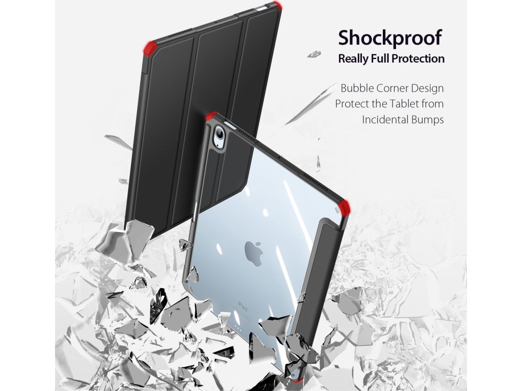 Ochranný kryt na iPad je opravdu odolný. Vyztužené rohy brání rozbití při pádech. Zadní část krytu je vyrobena z odolného plastu, který je velmi flexibilní a dokáže chytře rozvádět teplo tak, aby se zařízení v obalu nepřehřívalo. V rozích jsou chytře provrtány nenápadné otvory pro ještě lepší odvod tepla. Nemusíte se ani bát, že by se v krytu poškrábal zadní fotoaparát, protože obal přečnívá nad čočku a chrání ji. Navíc díky průhledné zadní části můžete nadále dávat na odiv krásu Apple tabletu.