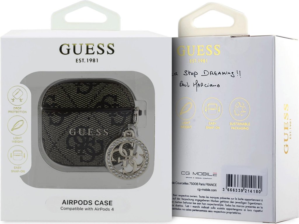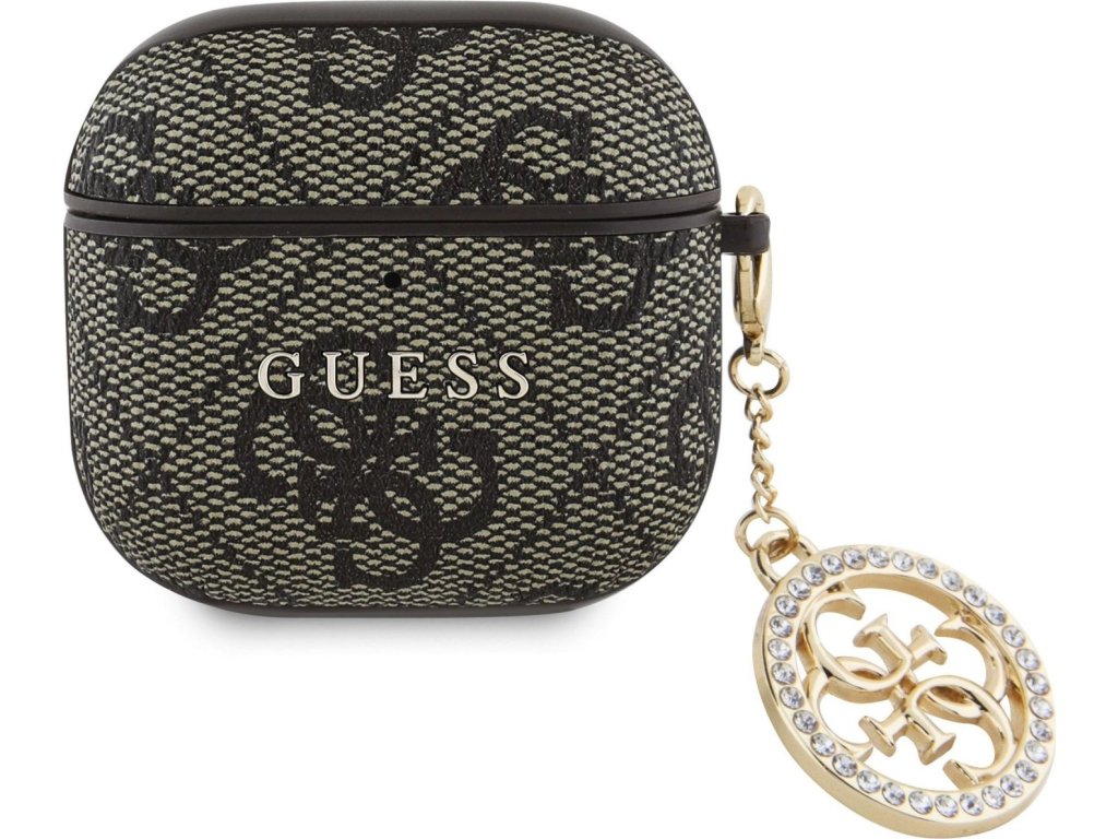 Pouzdro pro sluchátka AirPods 4 - Guess, 4G Script Brown GUA4P4E4CDW