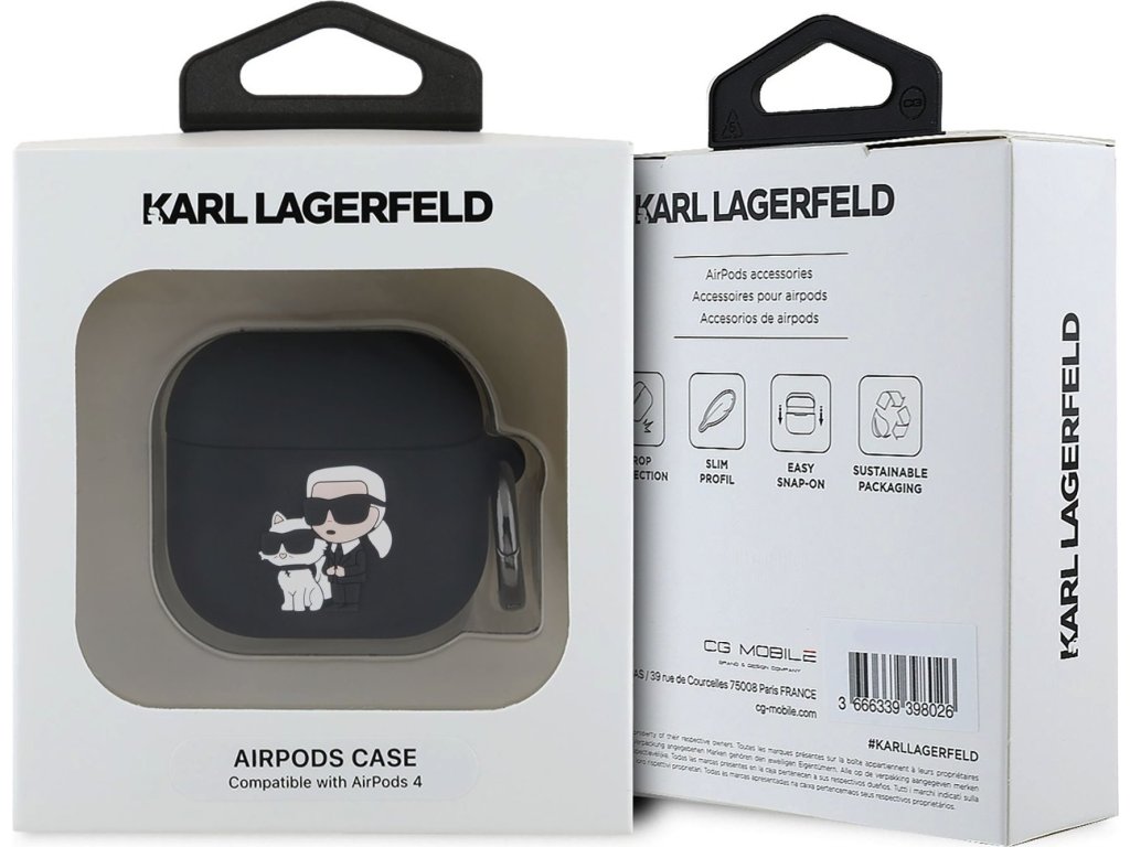 Pouzdro pro sluchátka AirPods 4 - Karl Lagerfeld, 3D Logo NFT Karl and Choupette Black KLA4RUNKC