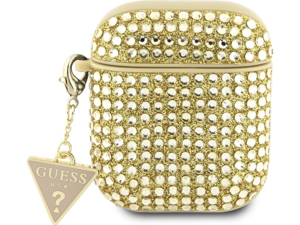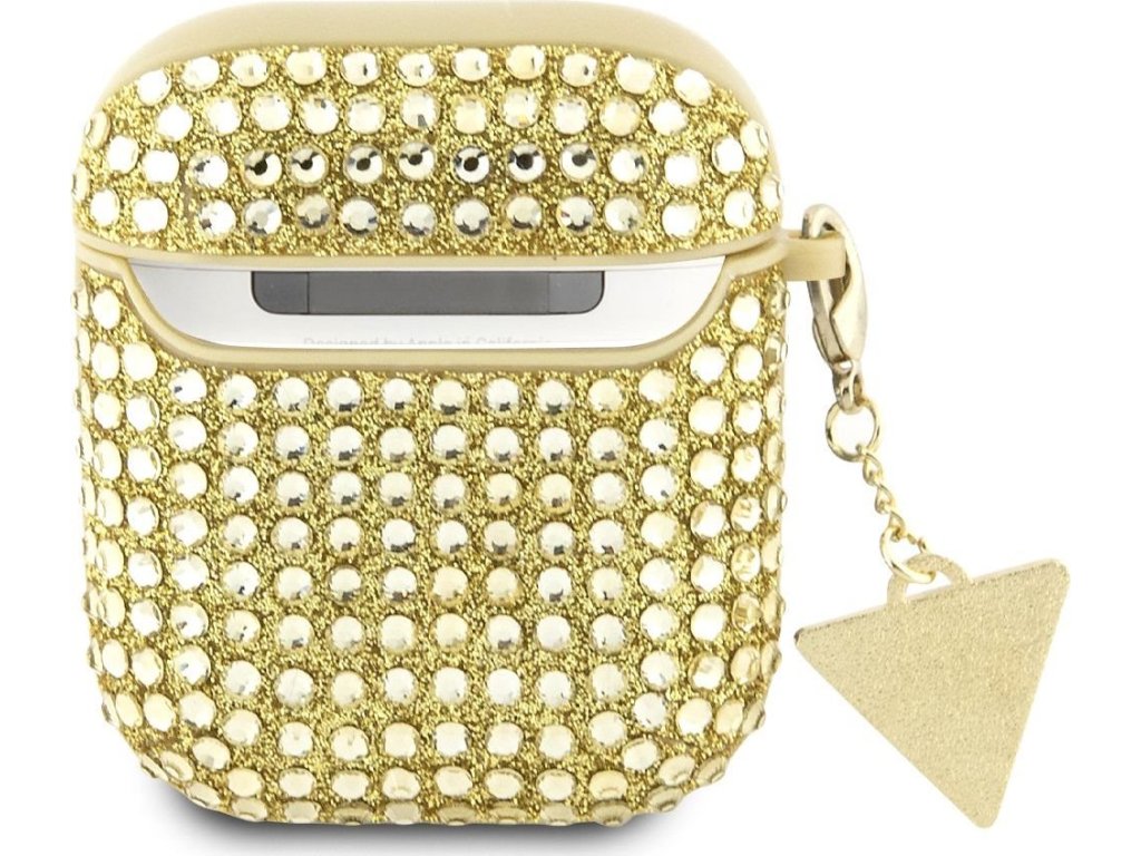 Pouzdro pro sluchátka AirPods - Guess, Rhinestones Triangle Metal Logo Gold GUA2HDGTPD