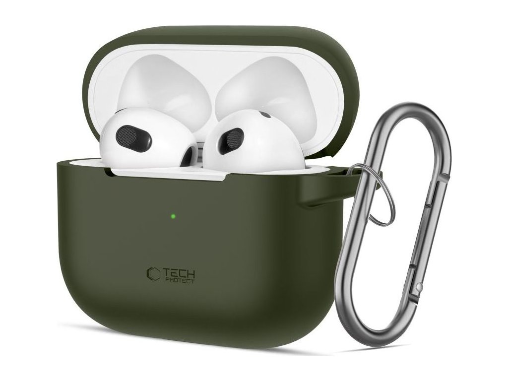 Pouzdro s karabinou na sluchátka AirPods 3 - Tech-Protect, Silicone Hook Olive Green