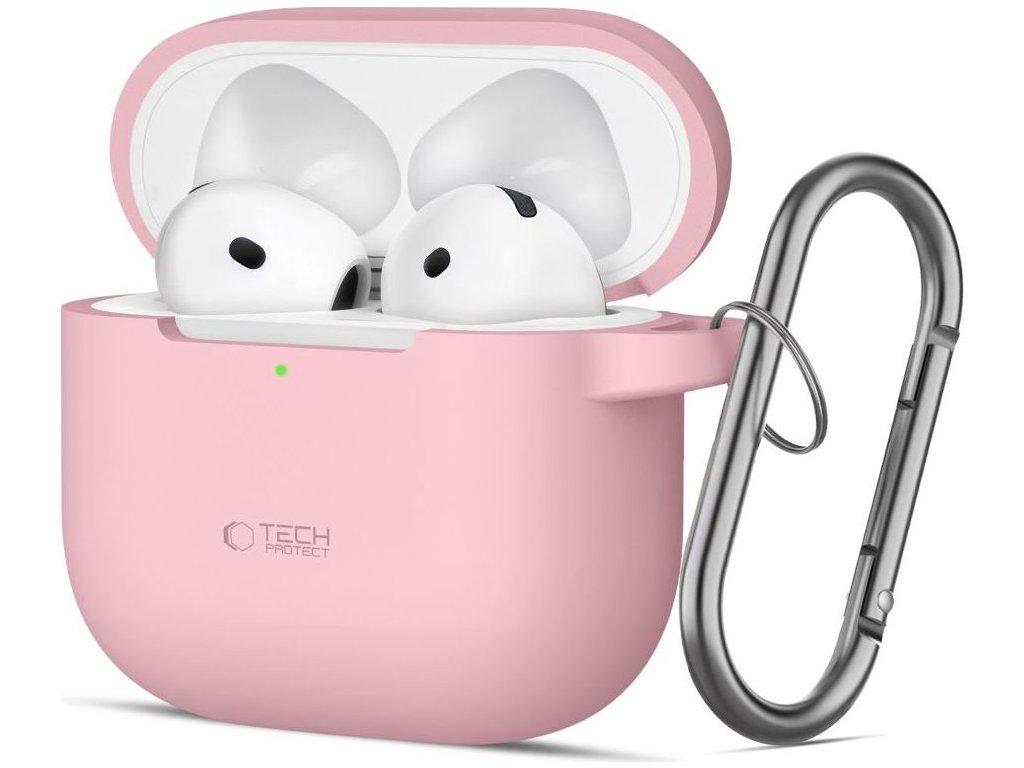 Pouzdro s karabinou na sluchátka AirPods 4 - Tech-Protect, Silicone Hook Dusty Pink