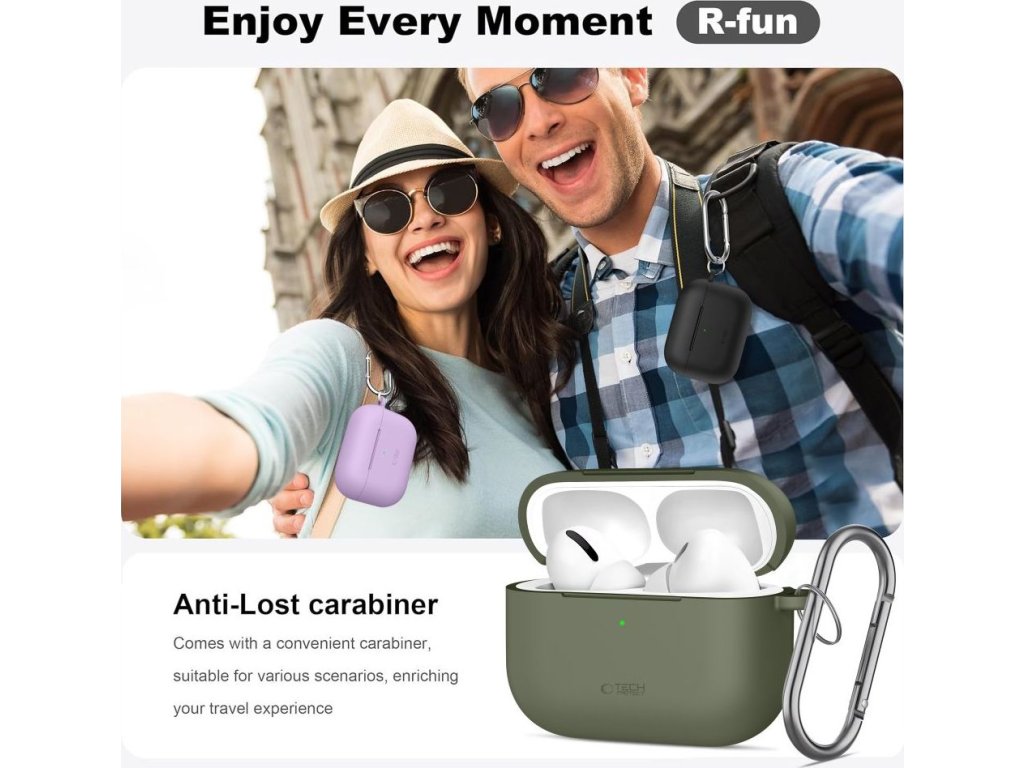Pouzdro na sluchátka AirPods Pro 3 s karabinou je vyrobeno z tenké gumy a výborně ochrání nabíjecí krabičku před poškrábáním a zničením. Sedí přesně na AirPods Pro 3 a i v nasazeném krytu můžete využívat funkci bezdrátového nabíjení.