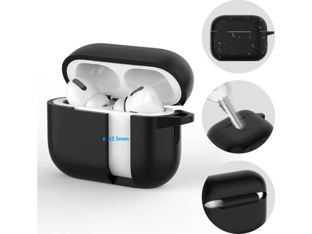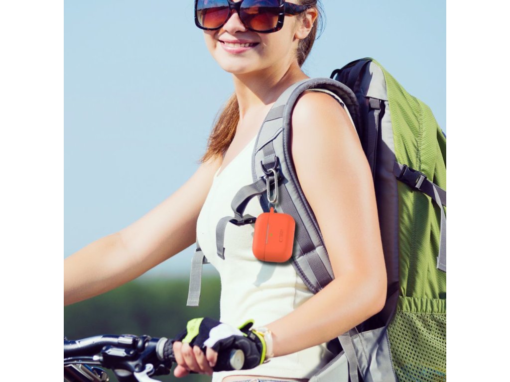 Pouzdro na sluchátka AirPods Pro s karabinou je vyrobeno z tenké gumy a výborně ochrání nabíjecí krabičku před poškrábáním a zničením. Sedí přesně na AirPods Pro a i v nasazeném krytu můžete využívat funkci bezdrátového nabíjení.