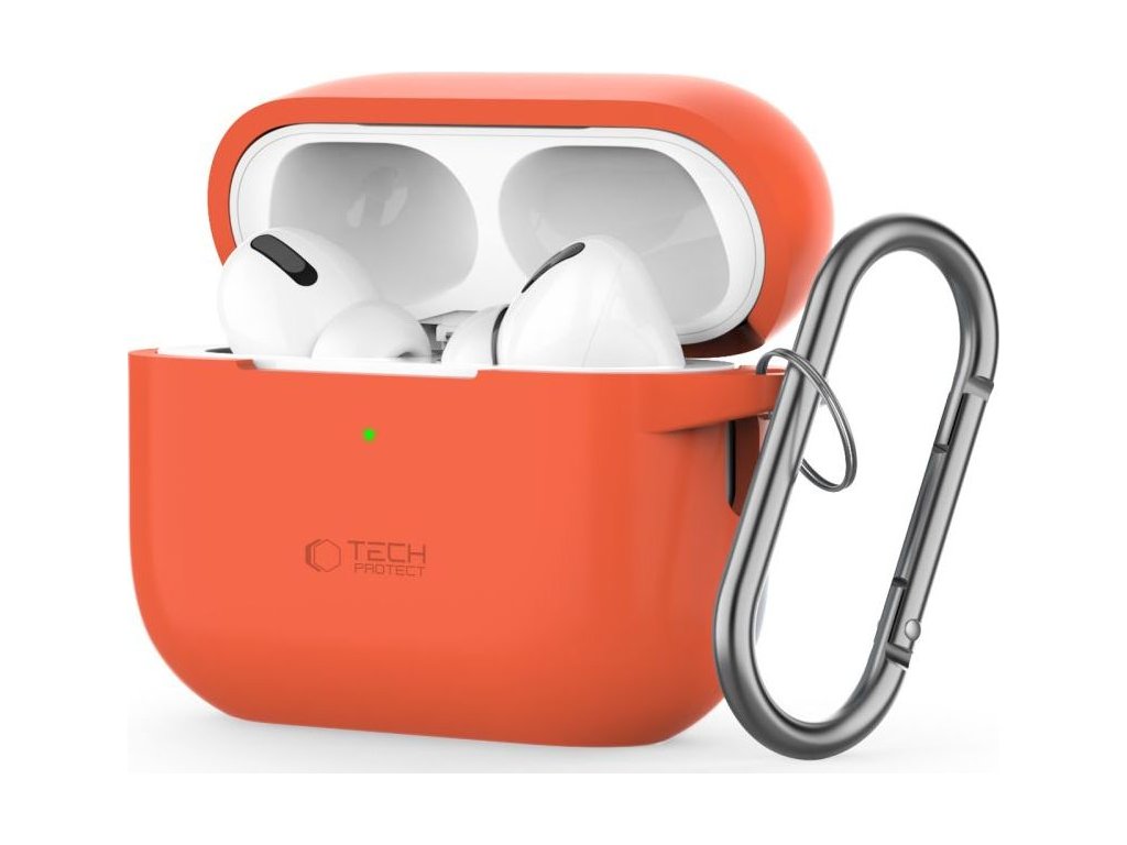 Pouzdro s karabinou na sluchátka AirPods Pro - Tech-Protect, Silicone Hook Neon Orange