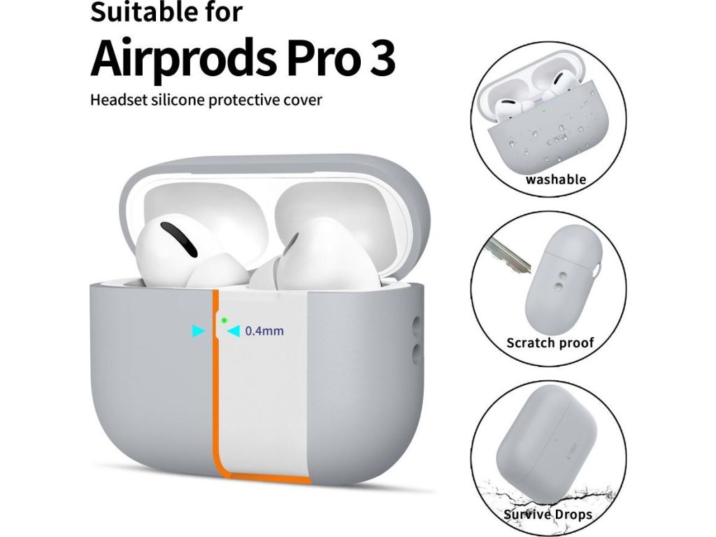 Kryt na sluchátka AirPods Pro 3 dokáže ochránit nabíjecí krabičku před poškrábáním nebo zničením. Bílý plast nemusí odolávat dlouho a je dobré ho udržovat v dobré kondici. Hlavně poškrábání a zašpinění může časem krabičku znehodnotit, a tak se rozhodně nikomu líbit nebude. Odolná guma bude sloužit jako nárazník a výborně udrží nabíjecí pouzdro v ideální kondici.