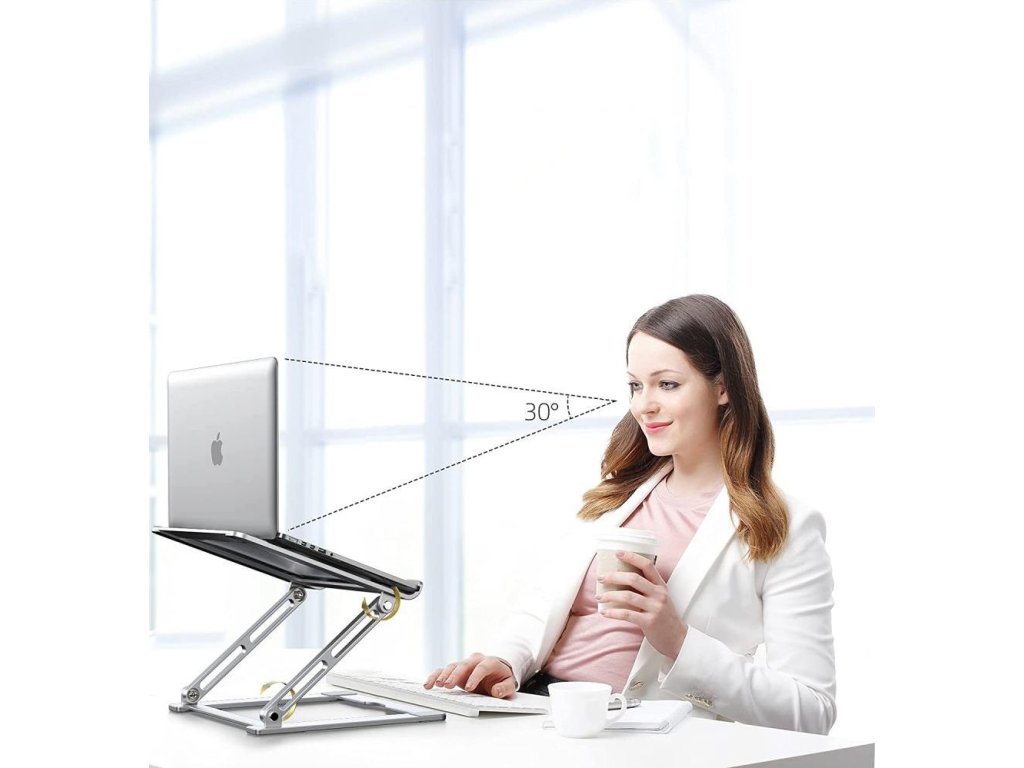 Stojan pro notebook Tech-Protect Prodesk je hliníkovým podstavcem pro bezpečné a polohovatelné uložení vašeho notebooku nebo MacBooku. Získáte tak lepší ergonomii použití a po složení ho jednoduše můžete vzít všude s sebou. Nastavení výšky monitoru za pomoci knih už tak nemusíte řešit, stojan vypadá lépe a knihy můžete raději číst.