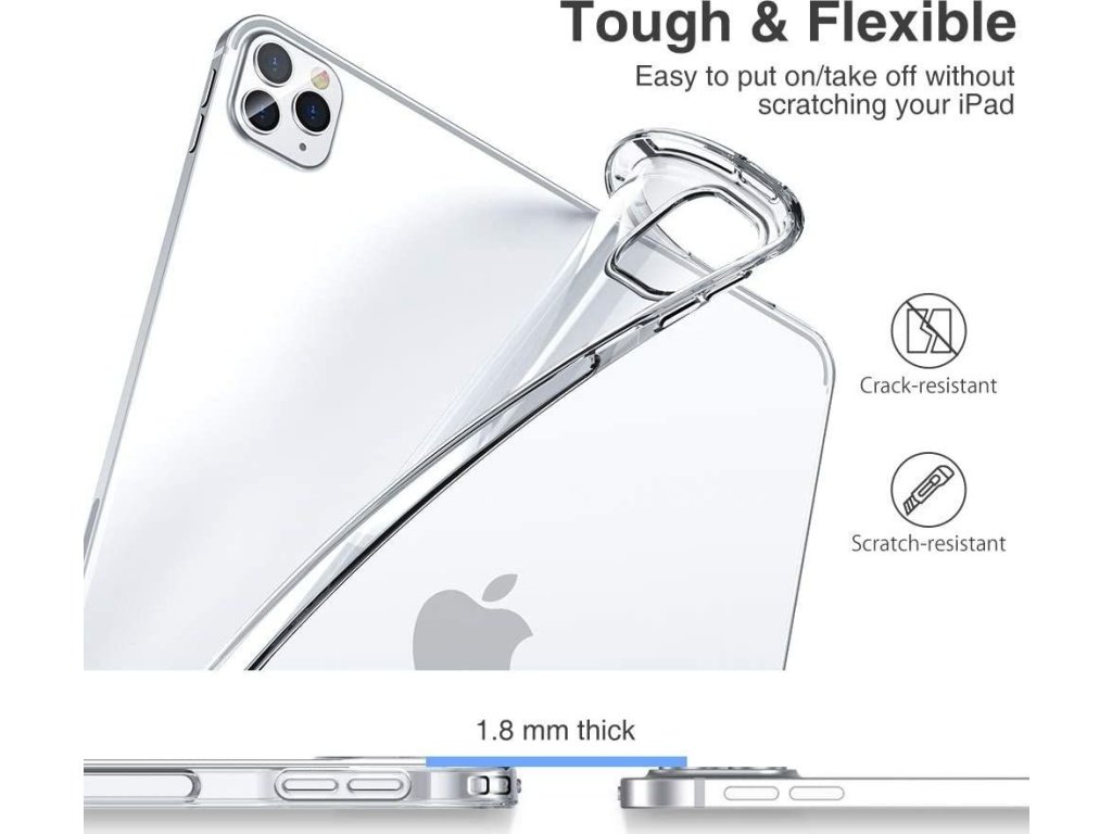 Odolný kryt pro iPad Pro 11 je tvořen z transparentního pružného TPU plastu, který je maximálně trvanlivý a nebudou na něm vznikat škrábance. Chrání záda tabletu a disponuje zesílenými rohy. Ty absorbují případné pády a nárazy, takže se iPadu uvnitř nic nestane.