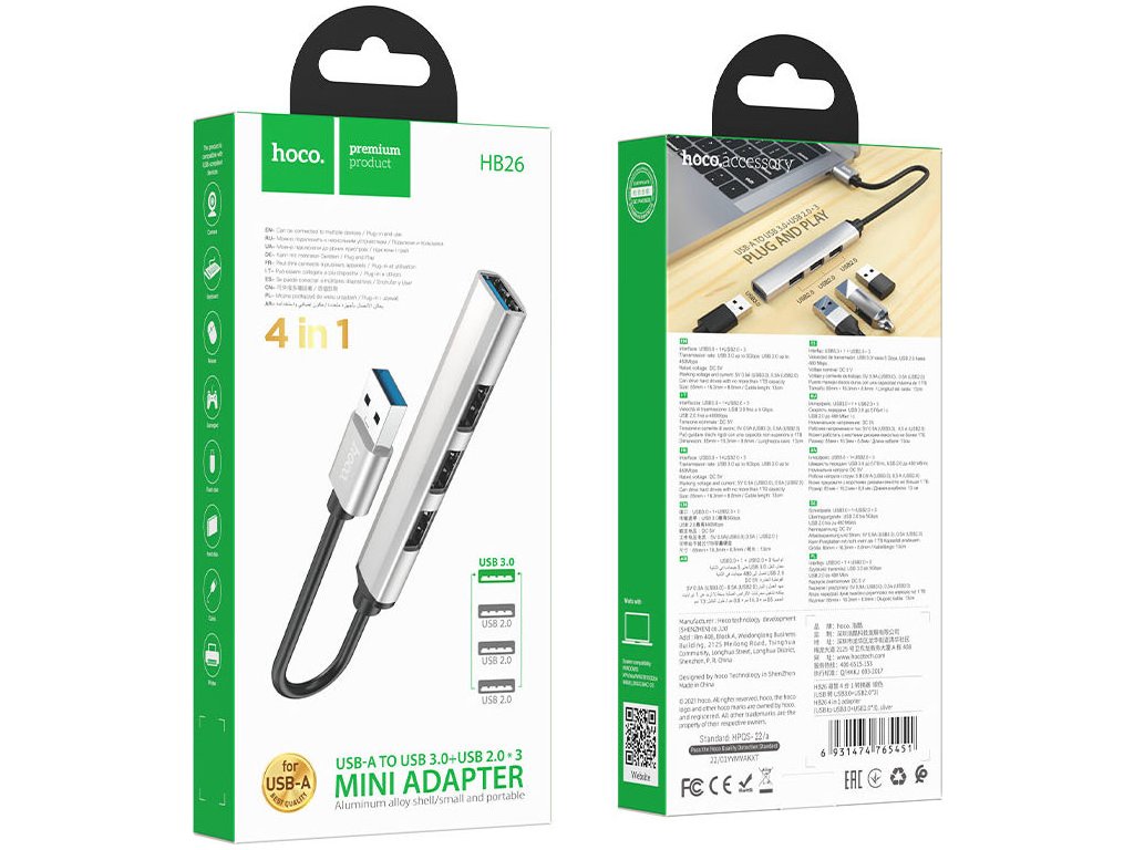 Redukce USB-A Hoco HB26 vám dokáže pomoct v případech, kdy máte na svém počítači málo USB portů. Zastrčením do jednoho portu získáte další čtveřici pro zapojení vašeho příslušenství. Jedno z USB je navíc ve standardu 3.0 a podporuje tak rychlé přenosy dat.