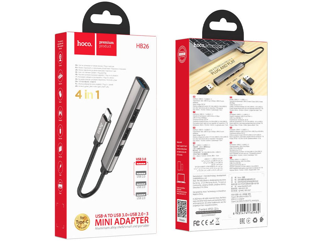 Redukce USB-C Hoco HB26 je šikovným pomocníkem pro rozšíření jednoho USB-C portu na klasické USB porty. Díky němu získáte rovnou čtveřici USB pro zapojení vašeho příslušenství. Jedno z USB je navíc ve standardu 3.0 a podporuje tak rychlé přenosy dat.