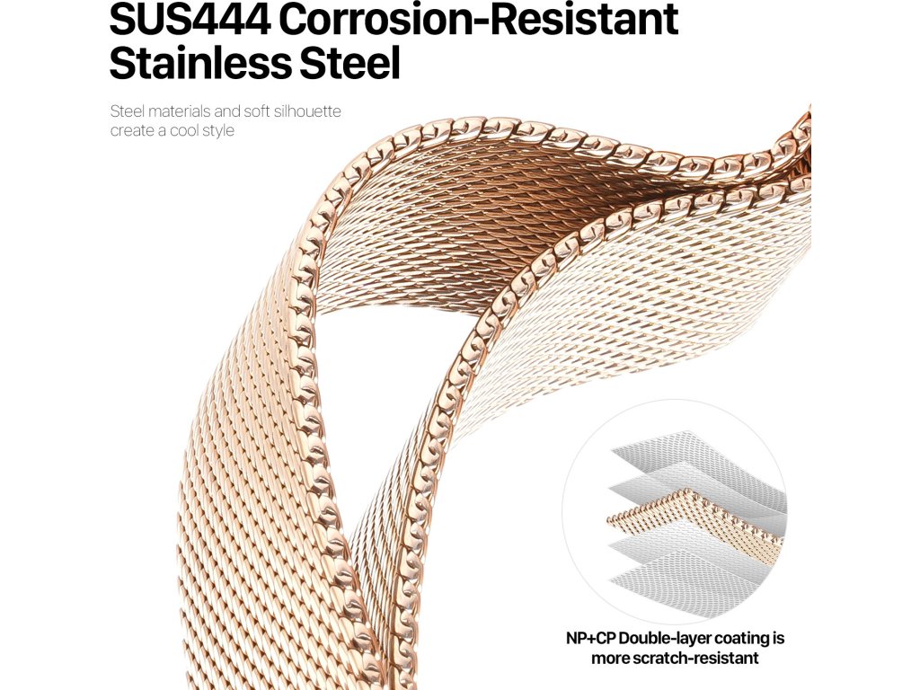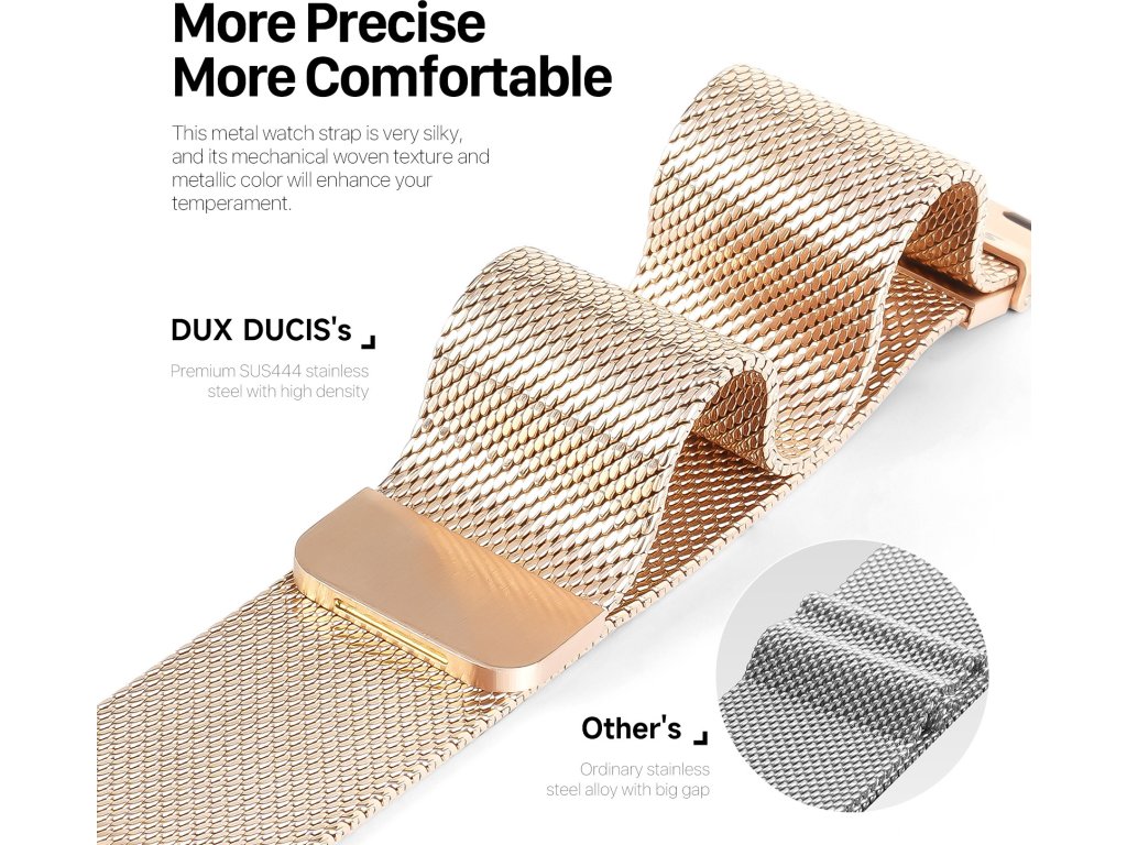 Řemínek DuxDucis Milanese Pro je vyroben z nerezové oceli SUS444, která zajišťuje nejen elegantní vzhled, ale i vysokou odolnost. Tento model je ideální pro ty, kteří hledají kombinaci stylu a funkčnosti.