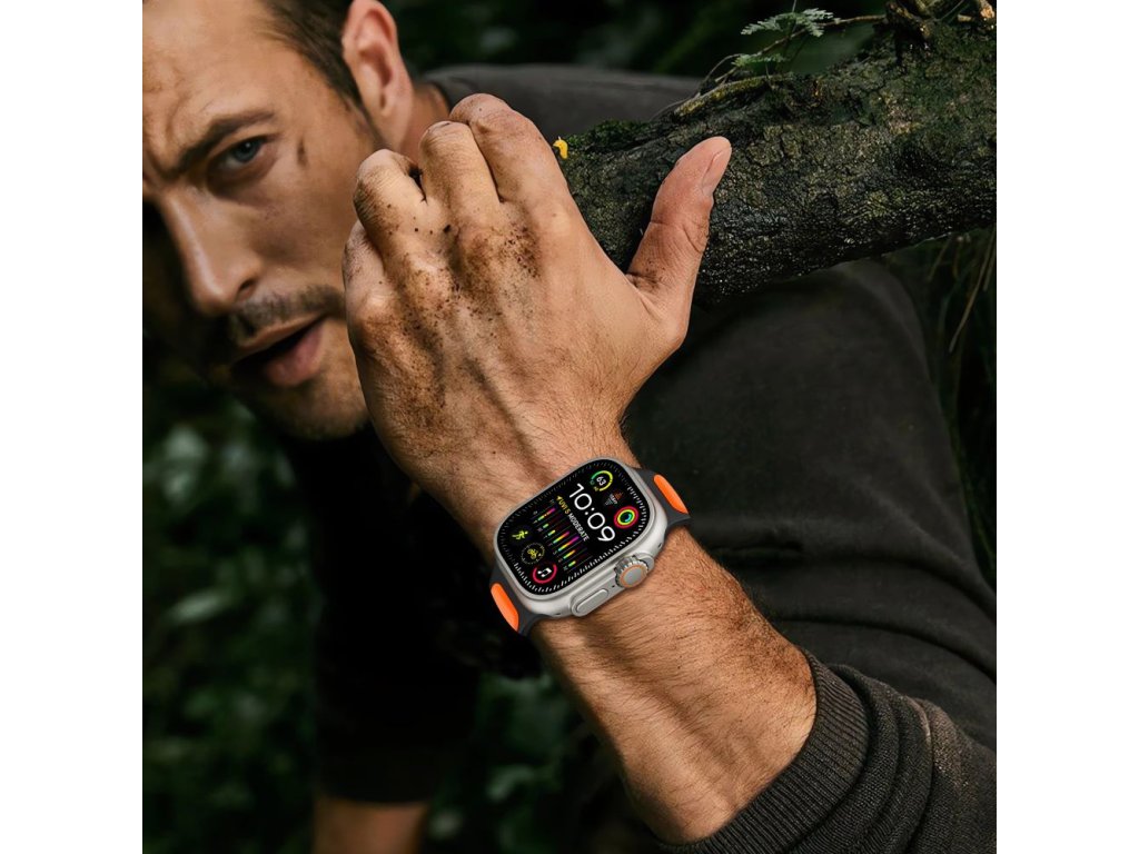Řemínek na Apple Watch 44mm / 45mm / 46mm / 49mm - Tech-Protect, Iconband Line Black/Orange