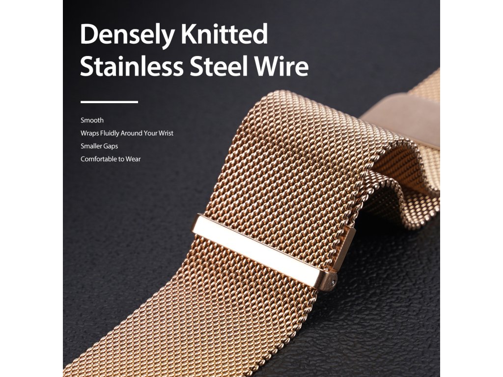 Díky použití kvalitní nerezové oceli je řemínek odolný vůči poškrábání a jiným formám opotřebení. Jeho tkaná struktura zajišťuje, že si zachová svůj tvar a vzhled i po dlouhodobém používání.